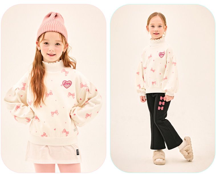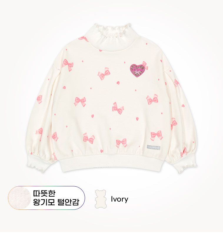 韓國 Jelispoon - 小蝴蝶結印內刷毛高領長袖大學T