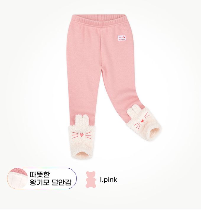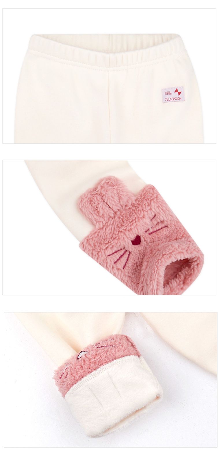 韓國 Jelispoon - 鬆緊腰毛絨刺繡兔裝飾刷毛內搭褲-白兔-粉