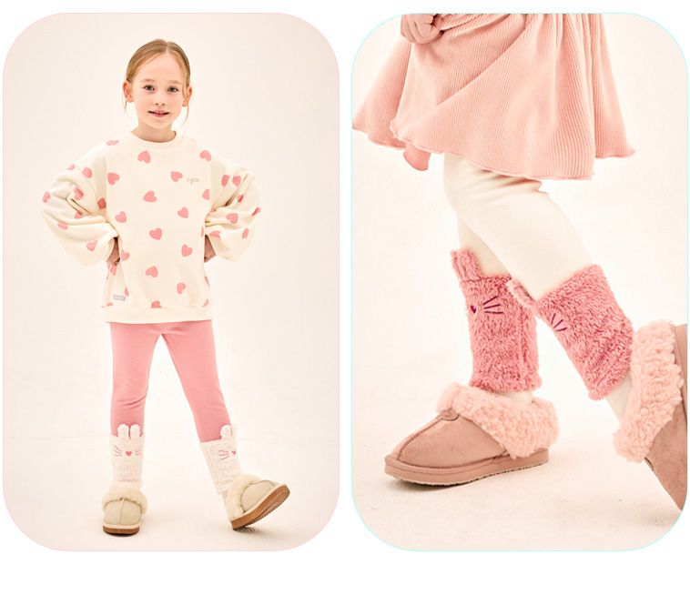 • 品名:鬆緊腰毛絨刺繡兔裝飾刷毛內搭褲