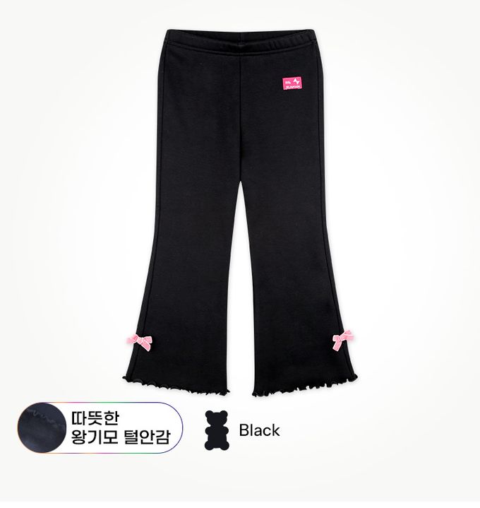韓國 Jelispoon - 鬆緊腰小蝴蝶結裝飾刷毛喇叭褲-黑