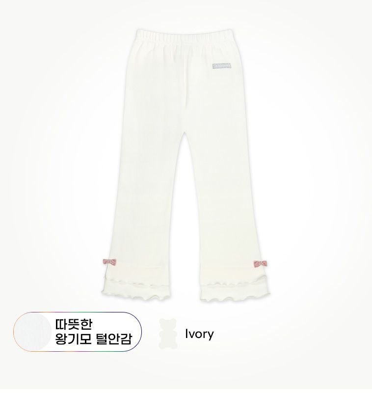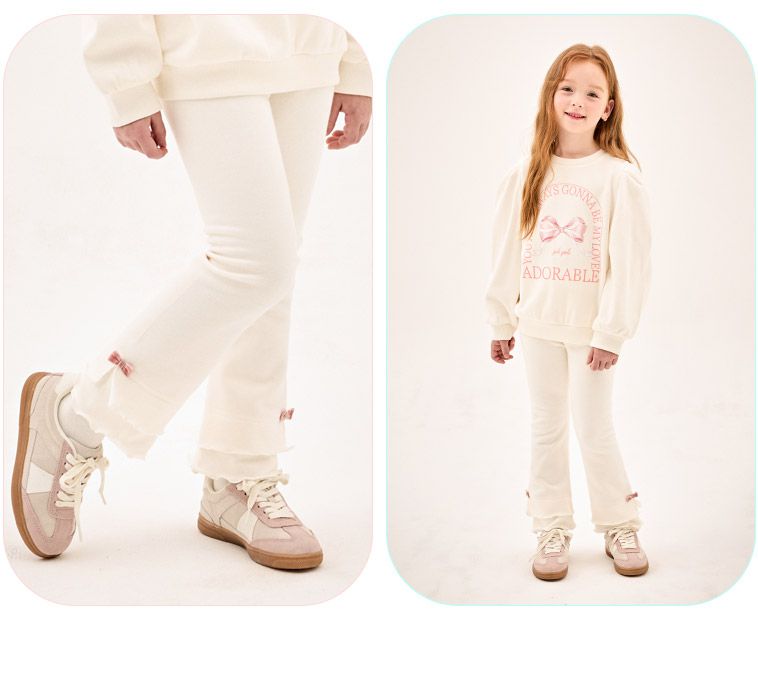 韓國 Jelispoon - 鬆緊腰層次感拼接刷毛喇叭褲-象牙白