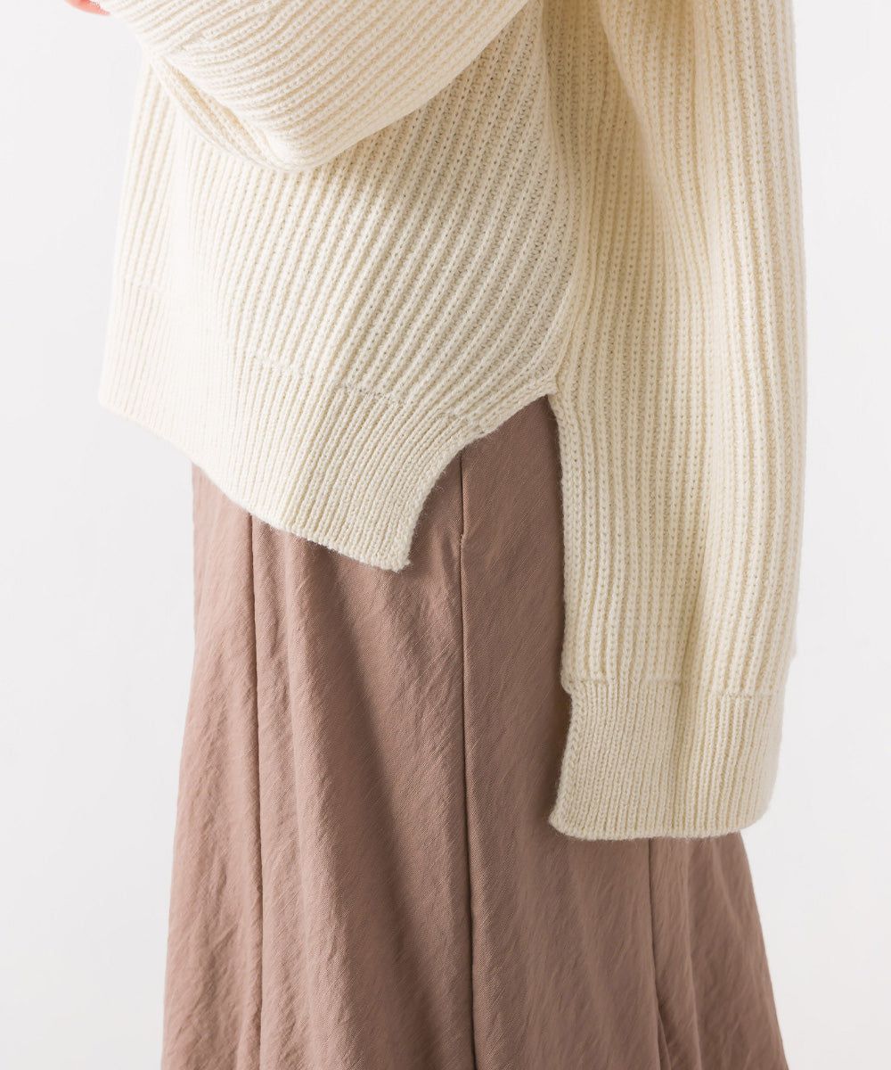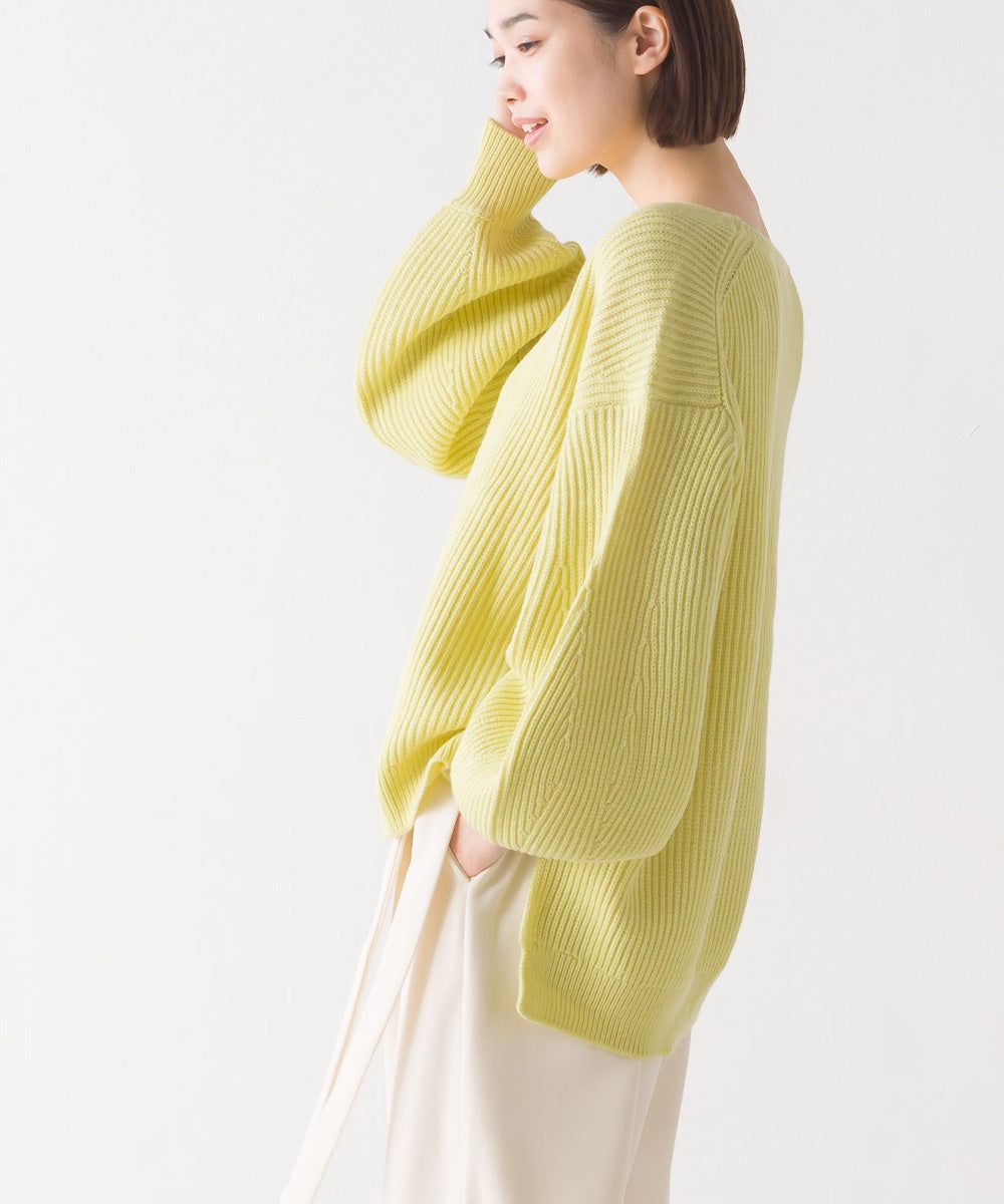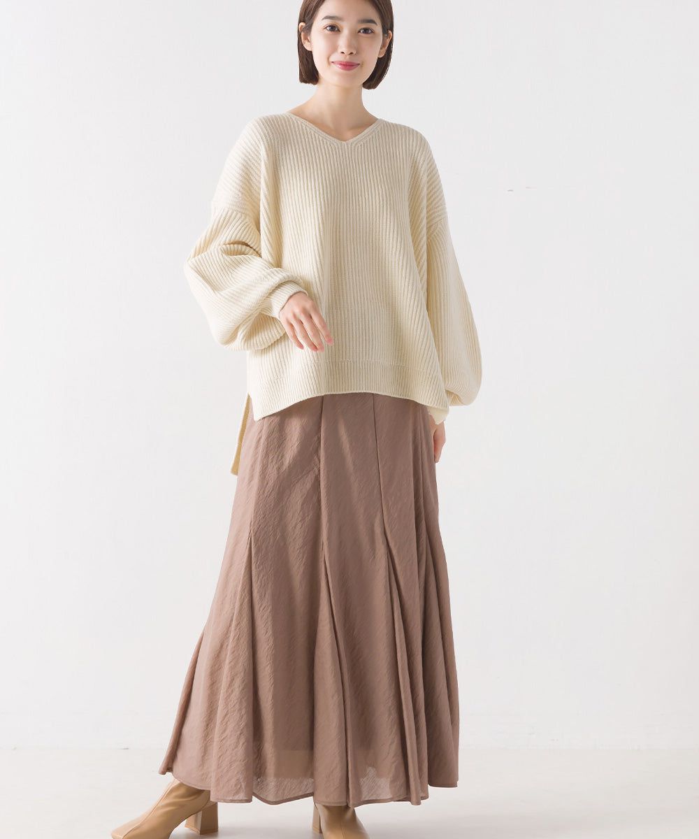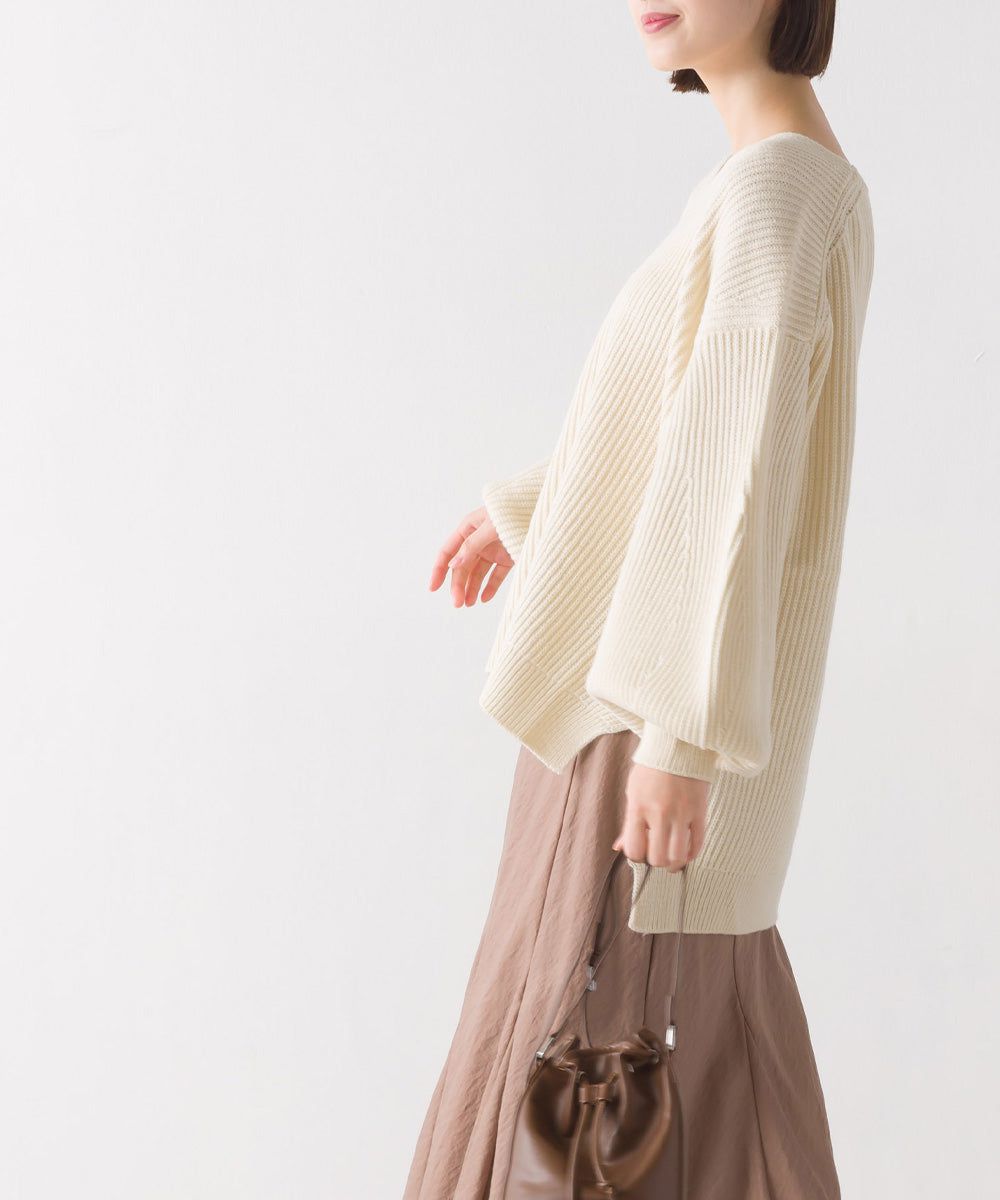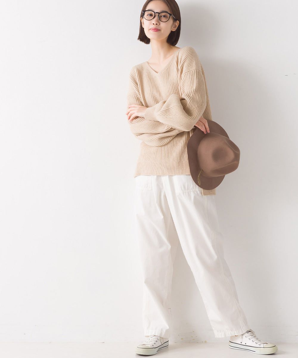 混羊毛V領羅紋寬袖針織上衣