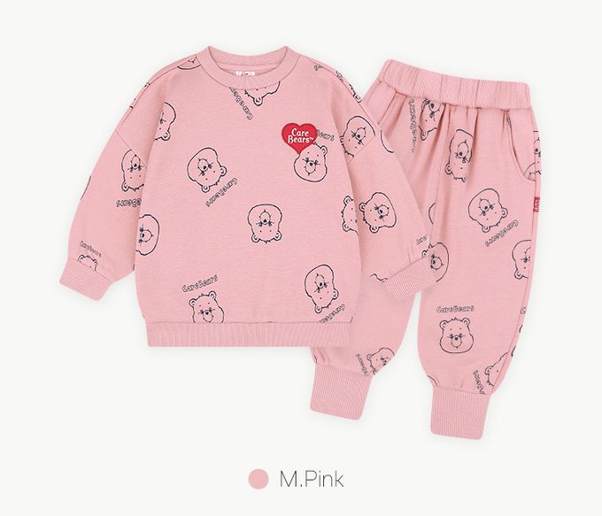 韓國 Care Bears - 聯名款大頭熊熊內刷毛長袖套裝-粉