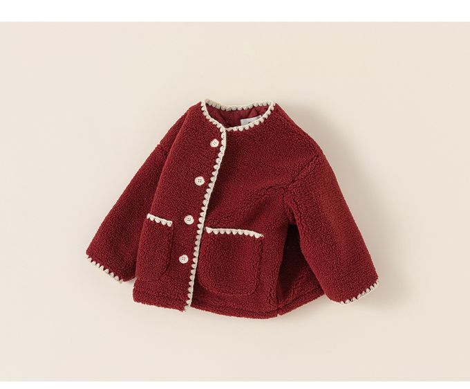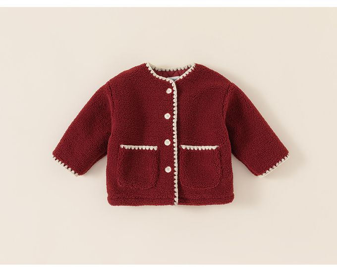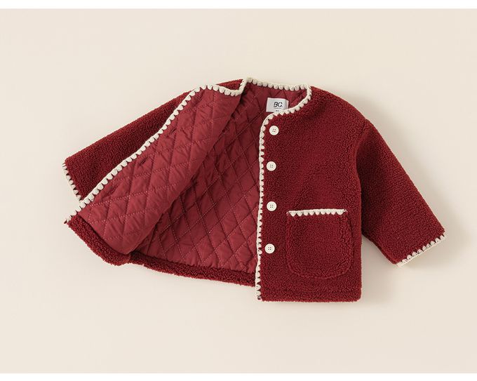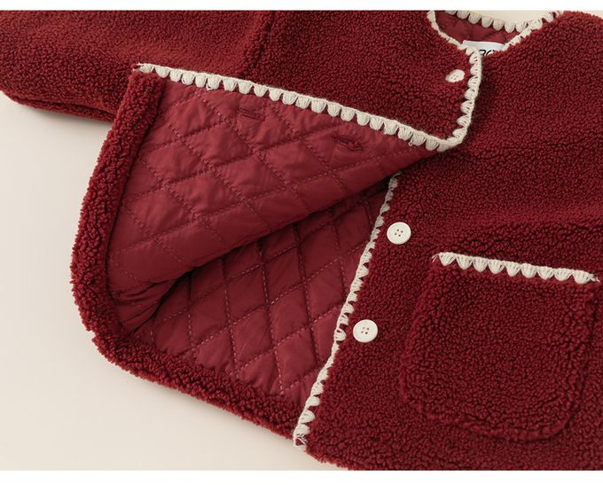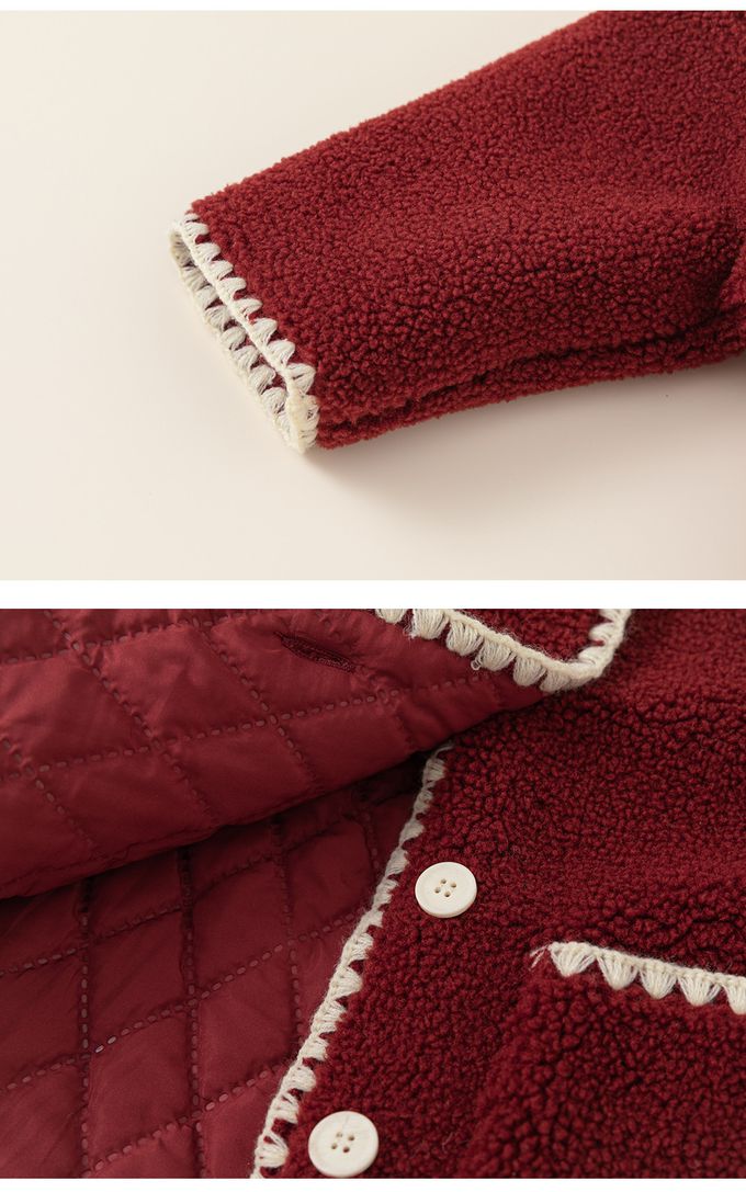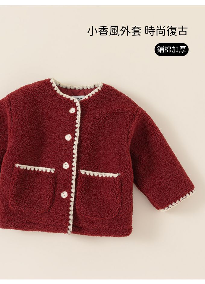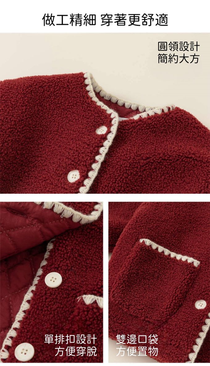 氣質小香風鋪棉外套-撞色滾邊-紅色