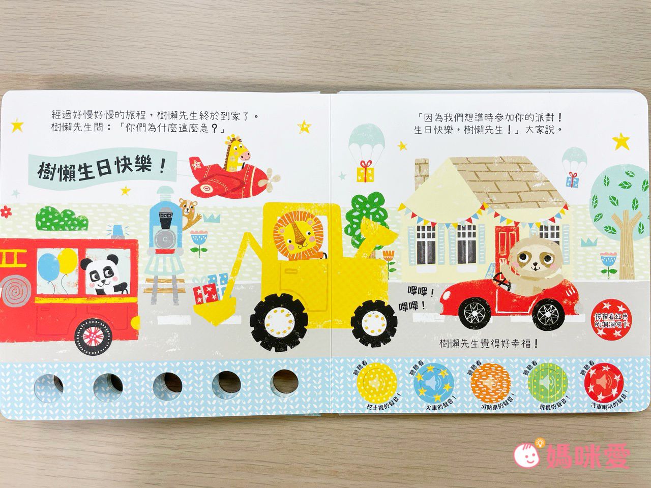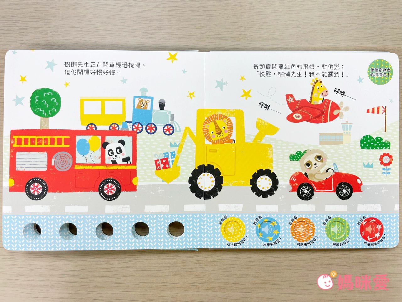 路上遇到了挖土機、火車、消防車、飛機。最後大家終於忍不住按喇叭的聲音!簡單的故事讓孩子一下就能理解!