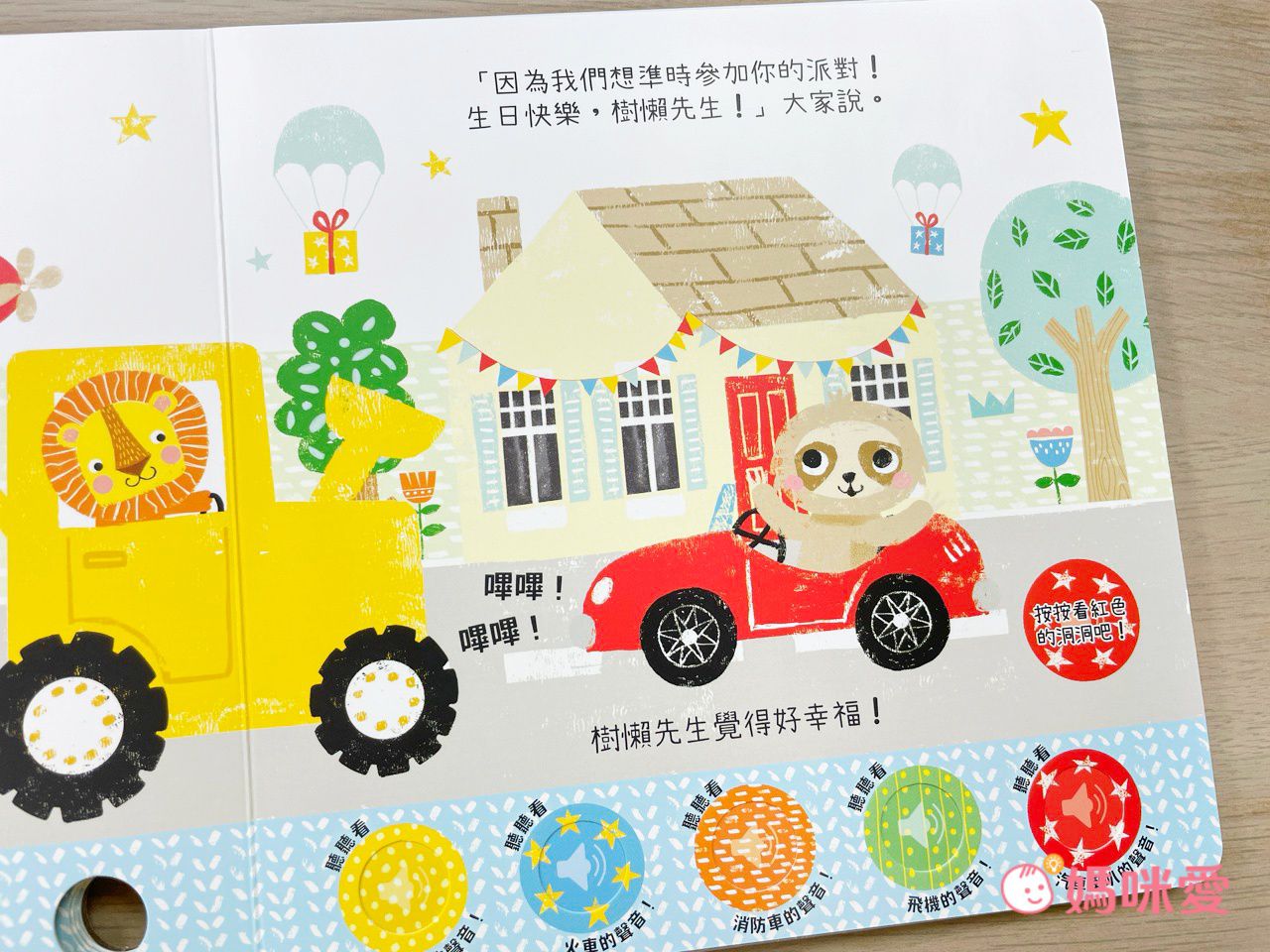 『因為我們想準時參加你的派對!生日快樂,樹懶先生!』樹懶先生覺得好幸福~