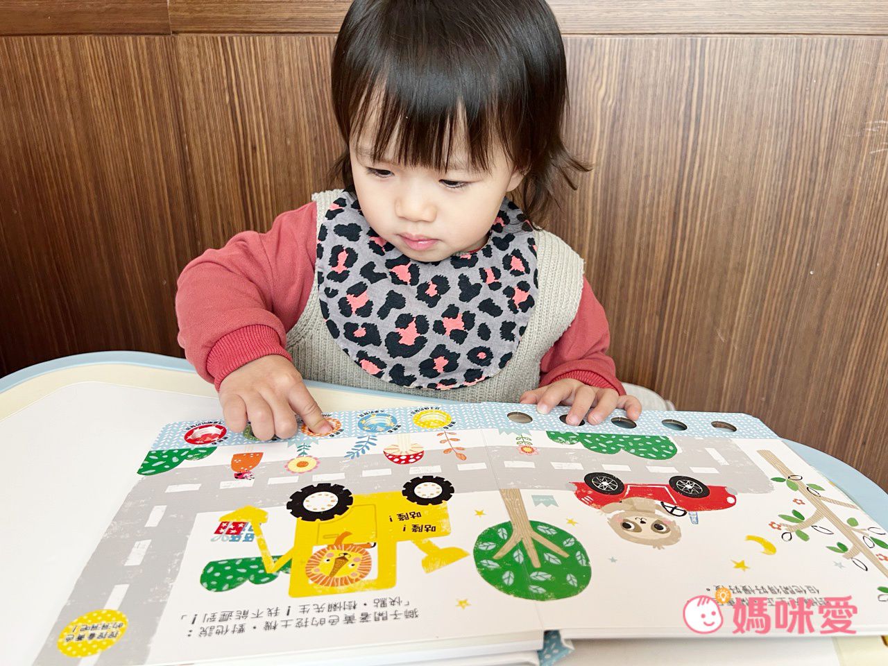 這系列的特色就是那5種豐富的聲音,只要按下按鍵就能聽見猴子聊天的聲音、鸚鵡在叢林裡高歌的嘎嘎聲以及大象喝水嬉戲的吵鬧聲,可以帶給孩子聽覺上的刺激,累積感官經驗。