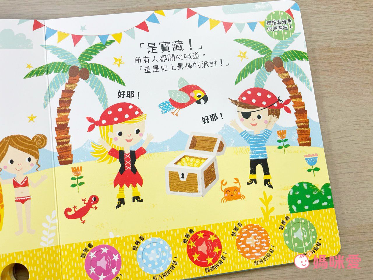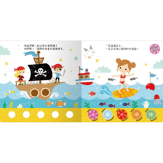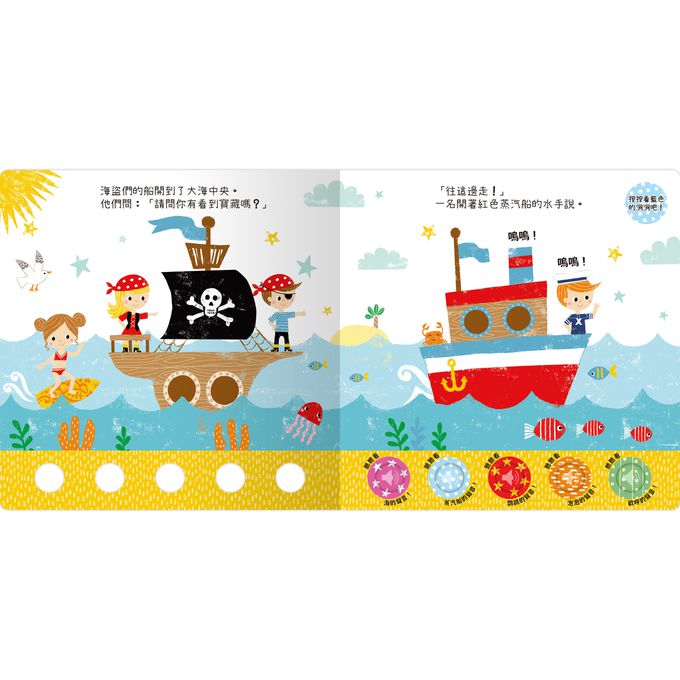 海盜們正蓄勢待發,張揚黑帆,準備開始一場尋找寶藏的冒險!按下書中的按鍵,和海盜們一起參與尋寶路上的點點滴滴!