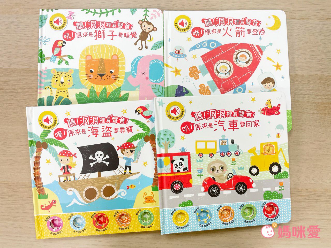 《聽!洞洞裡有聲音!》系列書共有四本,每本書都提供一則簡單易讀的故事,並鼓勵孩子們互動並成為故事的一部分,而每本書也都有情節的反轉,使故事有一個奇妙的驚喜結局。讓孩子們驚喜之餘,也培養他們對於生活的想像力 ,並刺激孩子們抽象思考。