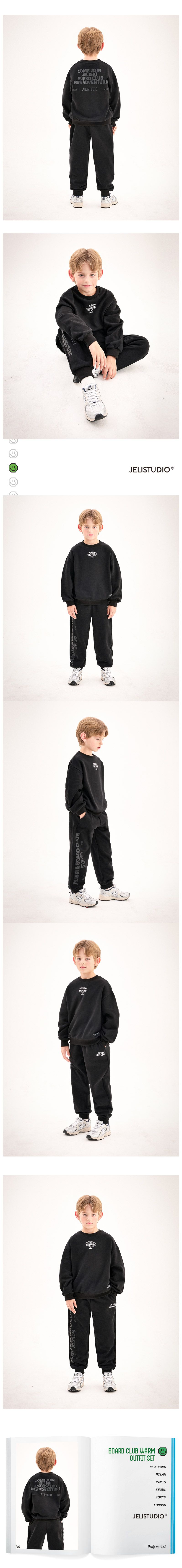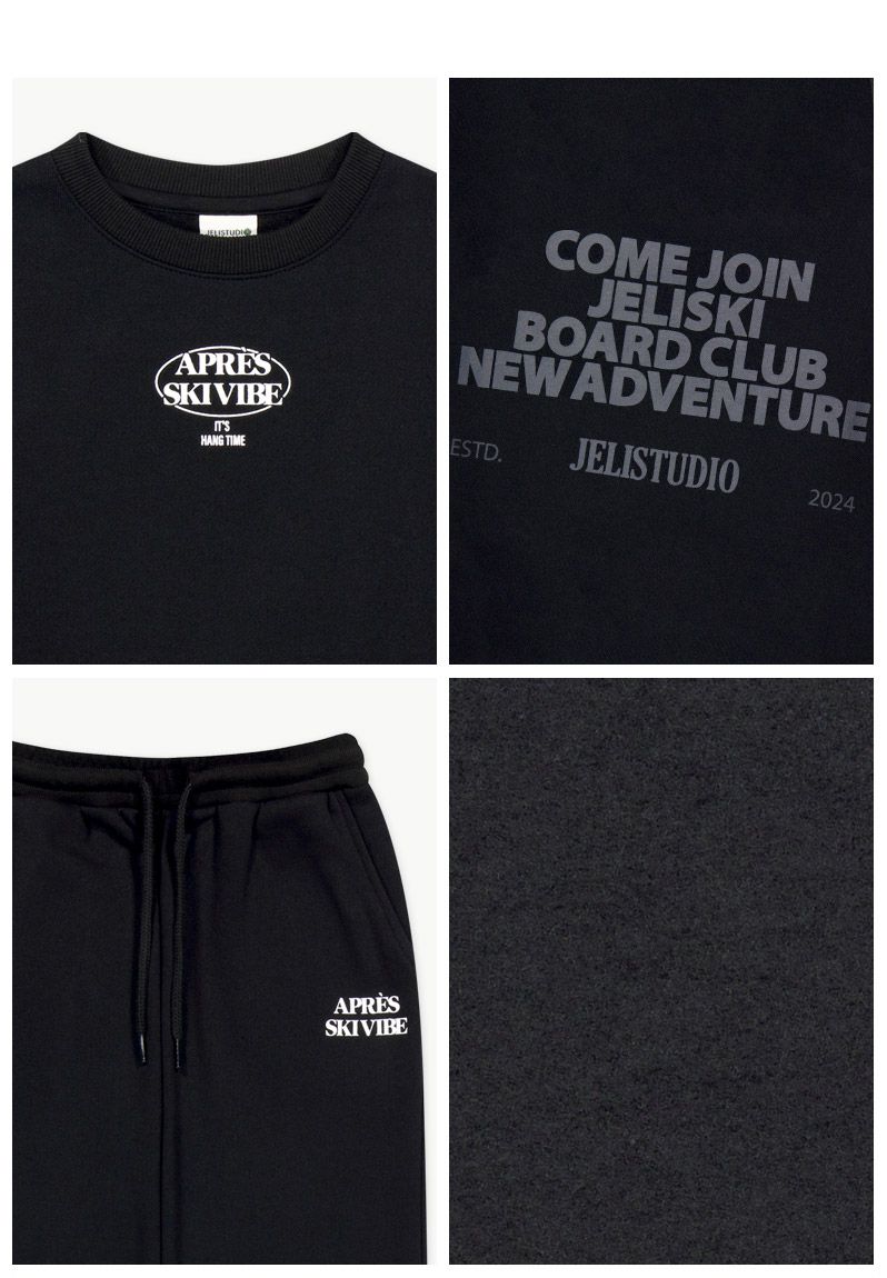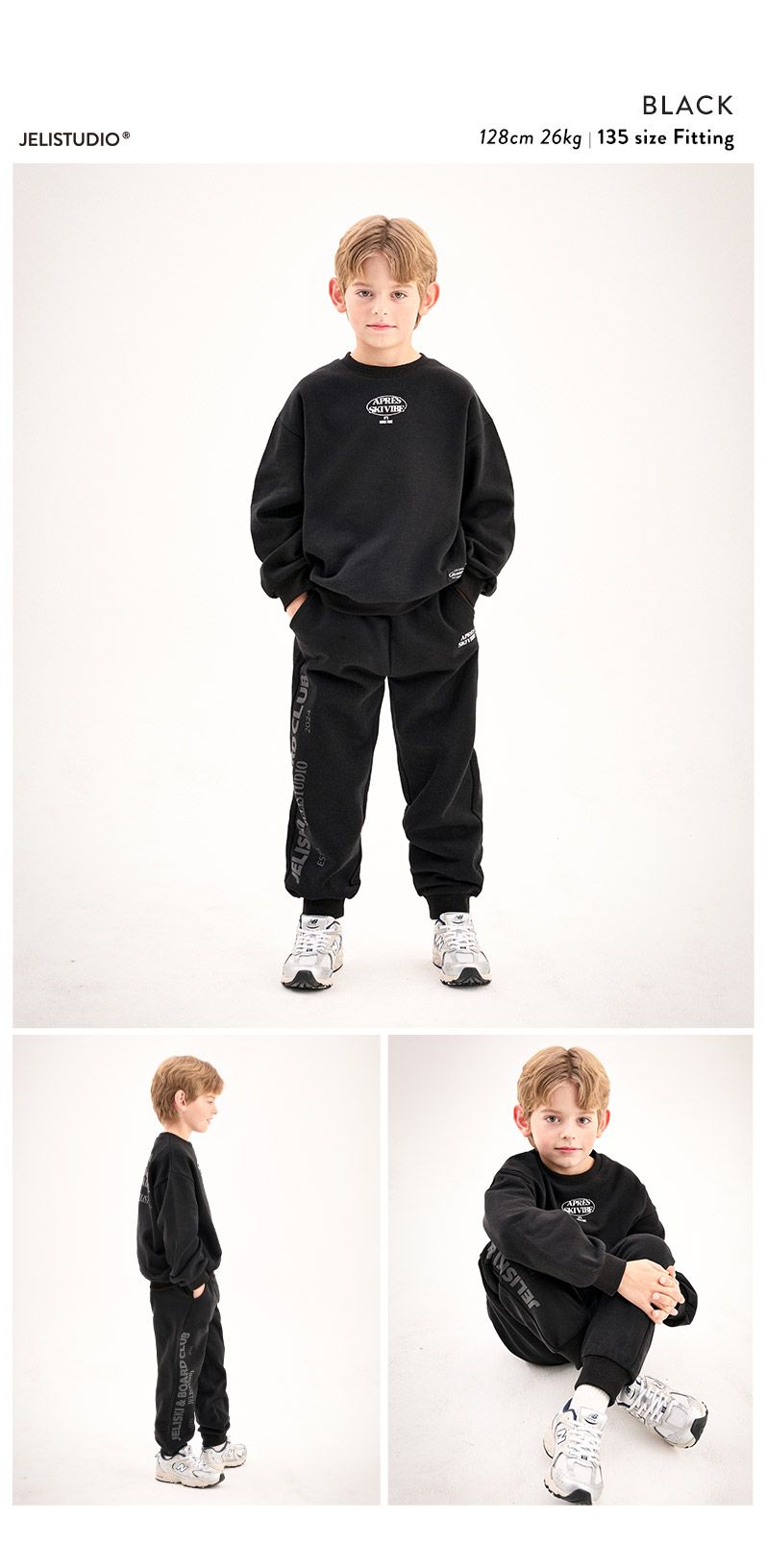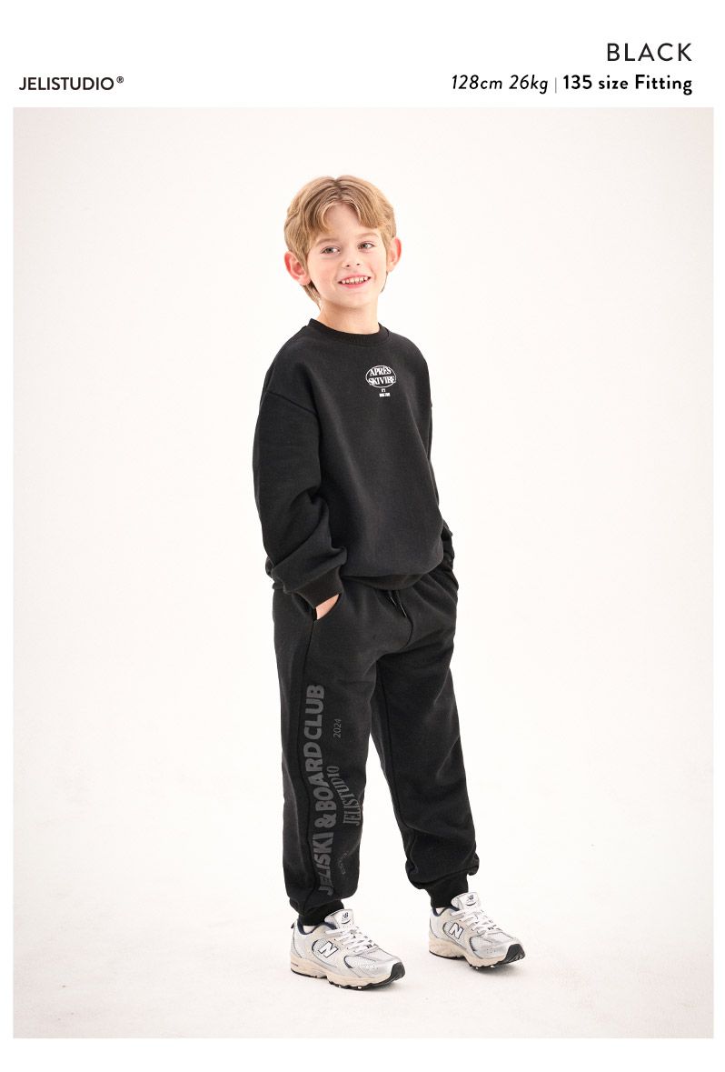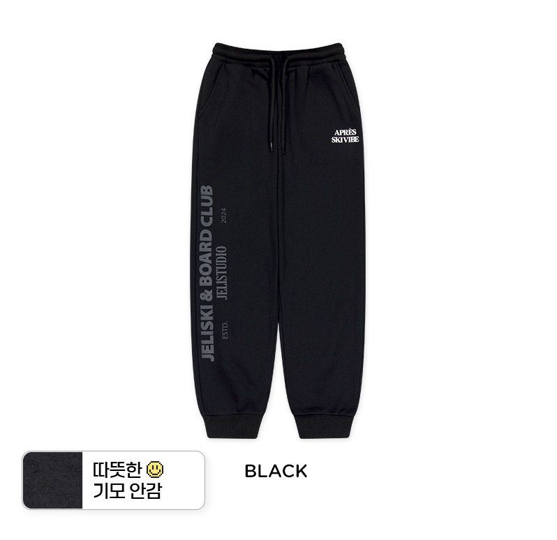 韓國 JELISTUDIO - SKI CLUB字印內磨毛長袖套裝-黑
