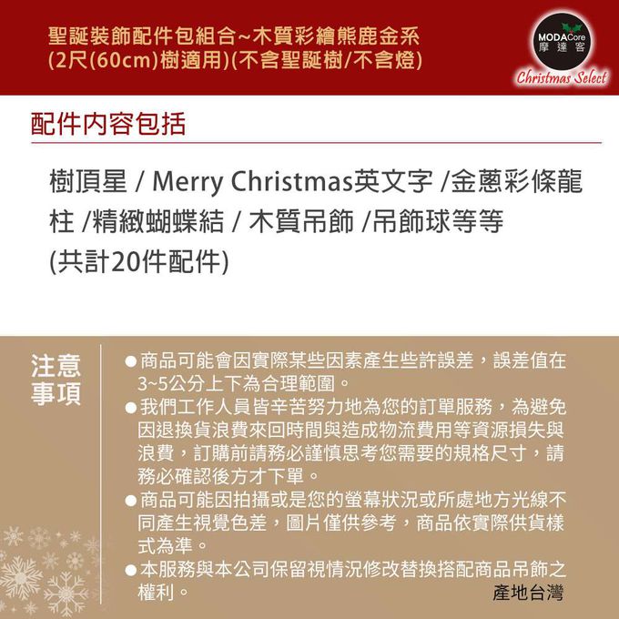 品名:聖誕裝飾配件包組~木質彩繪熊鹿金系(2尺樹適用)(不含聖誕樹/不含燈)