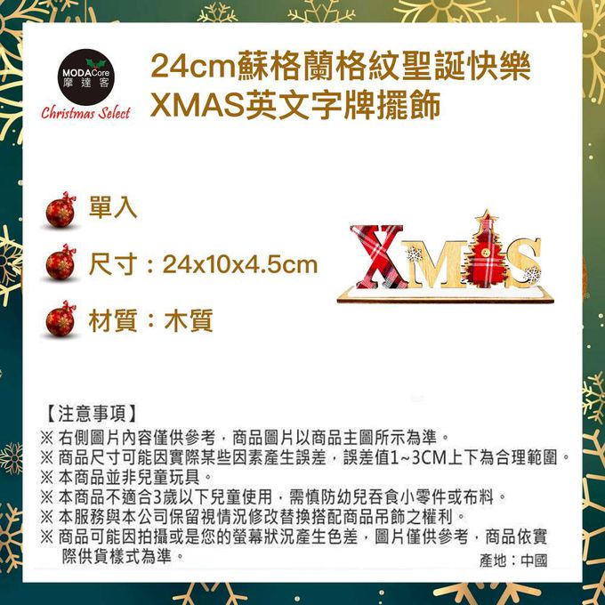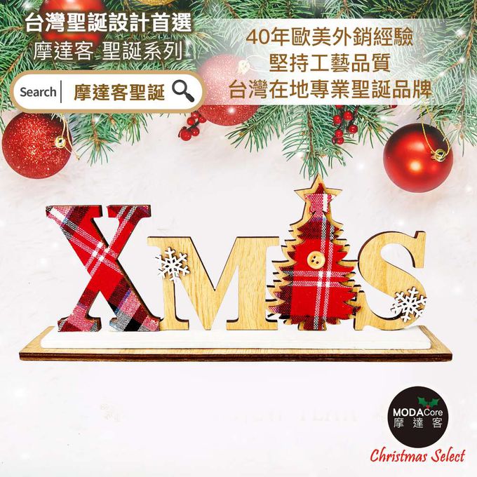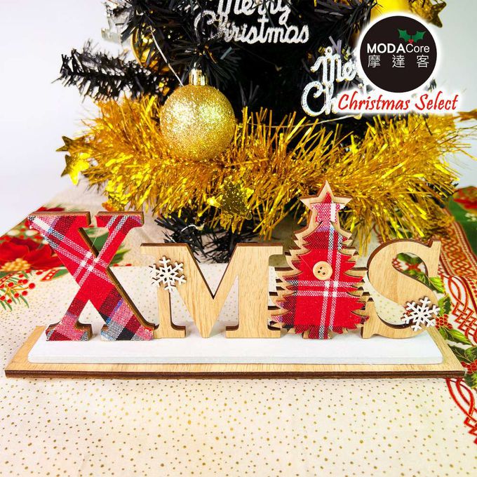 品名:24cm蘇格蘭格紋聖誕快樂XMAS英文字牌擺飾
