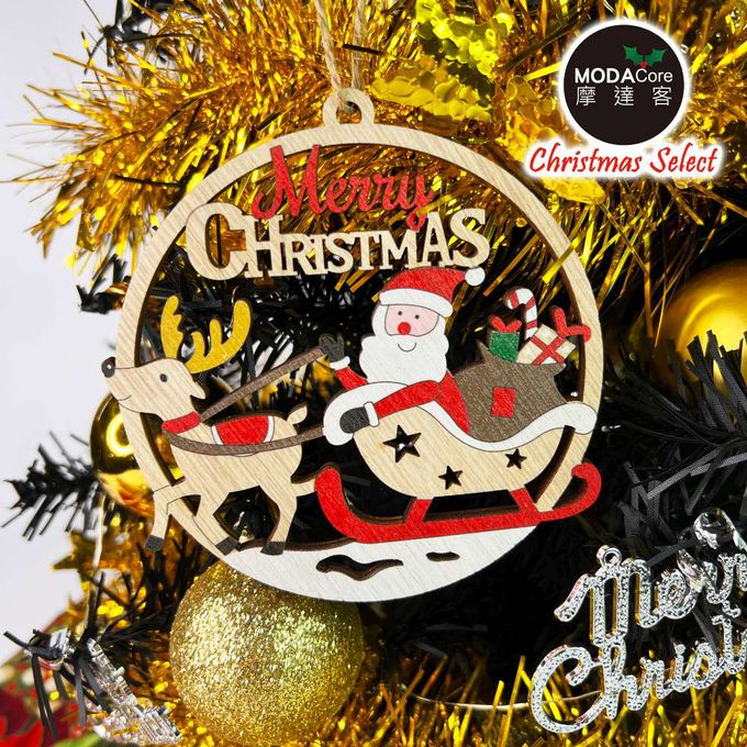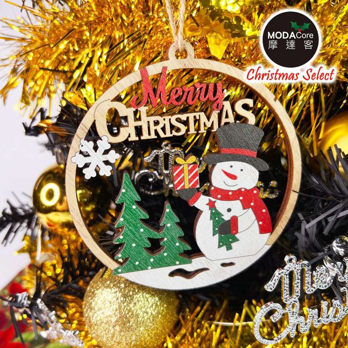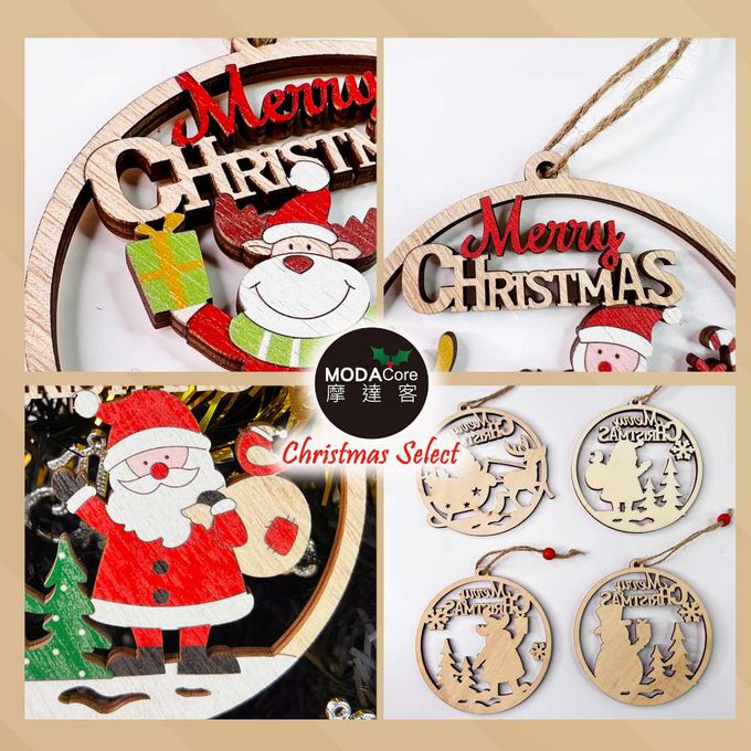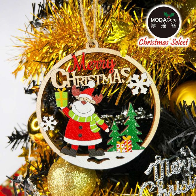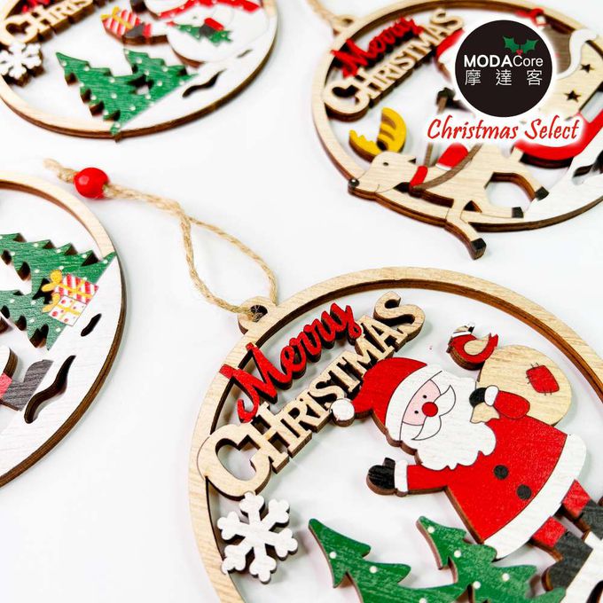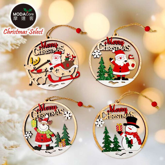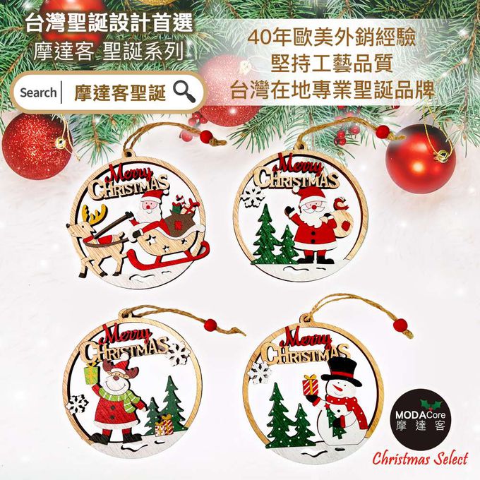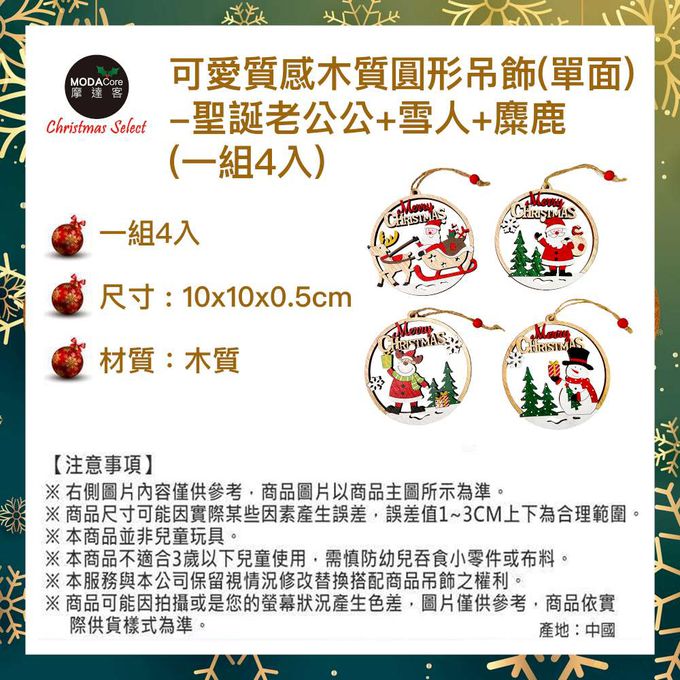 品名:可愛質感木質圓形吊飾(單面)-聖誕老公公+雪人+麋鹿4入組