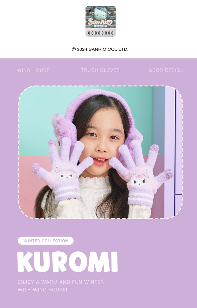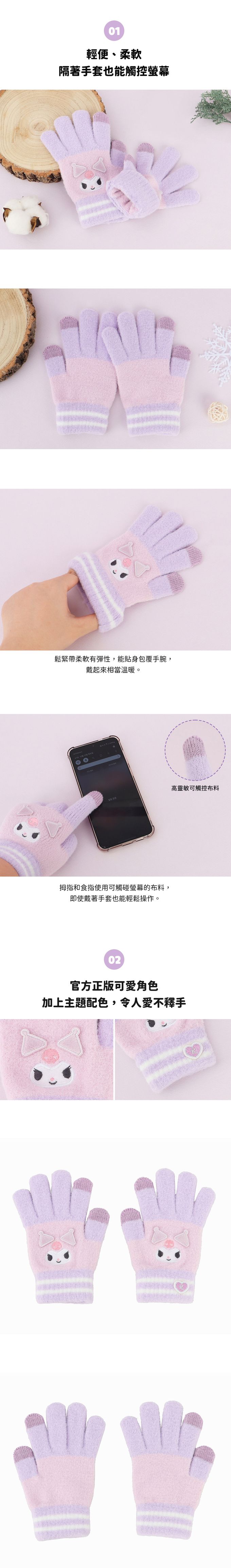 韓國配件連線 - (可手機觸控)保暖造型手套-卡通人物庫洛米-粉紫