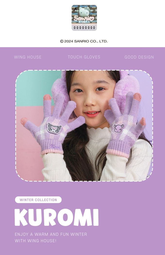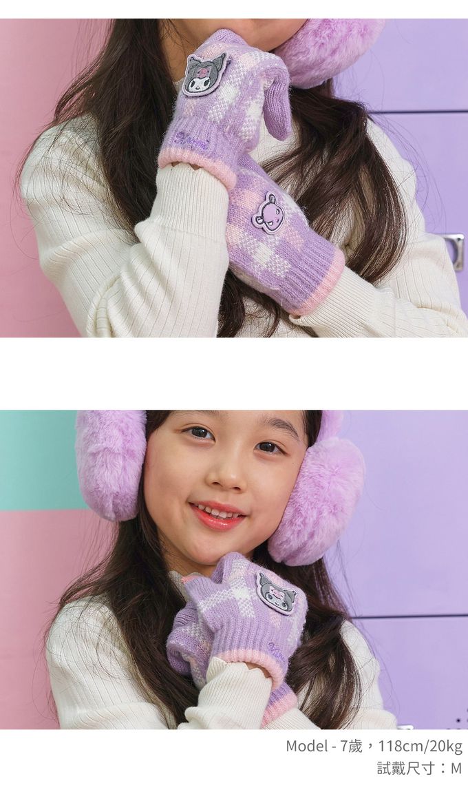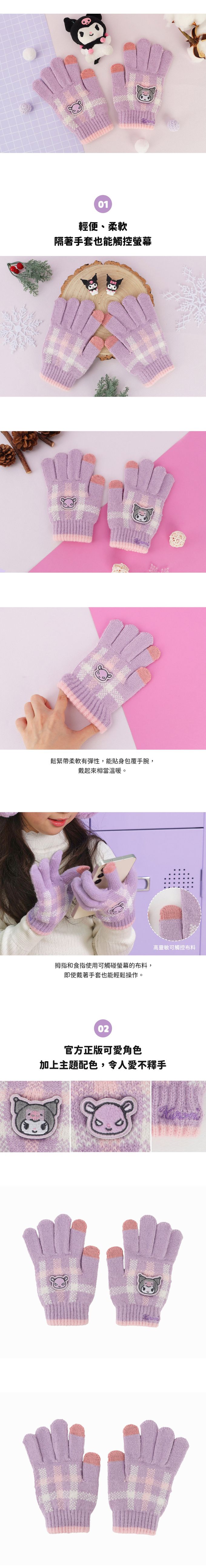 韓國配件連線 - (可手機觸控)保暖針織造型手套-卡通人物庫洛米-格紋紫