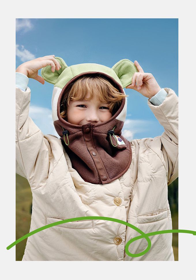 雙層加絨圍脖一體帽-立體耳朵-秋霜米