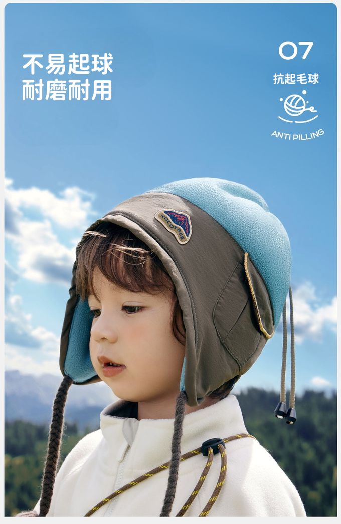 帽頂抽繩,可調整頭圍大小