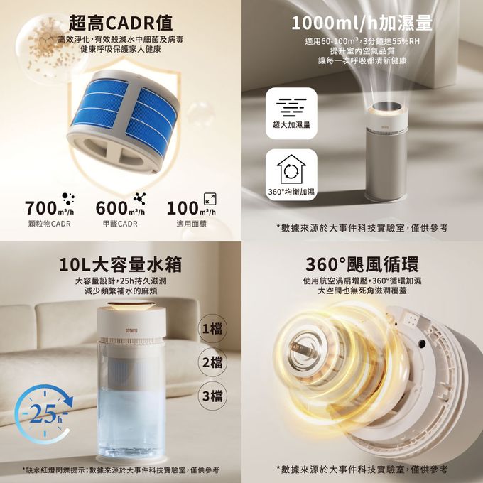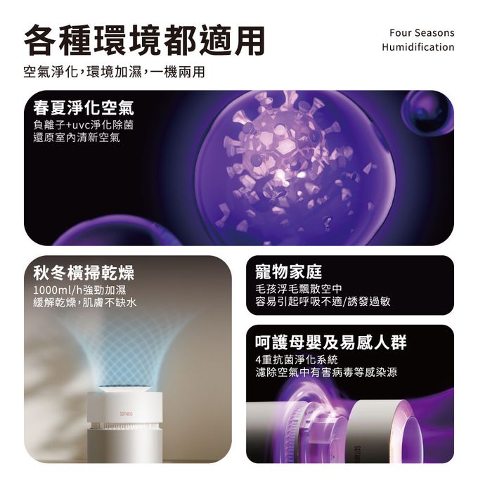 一機兩用,空氣淨化加上環境加濕