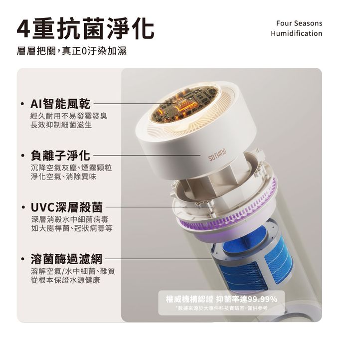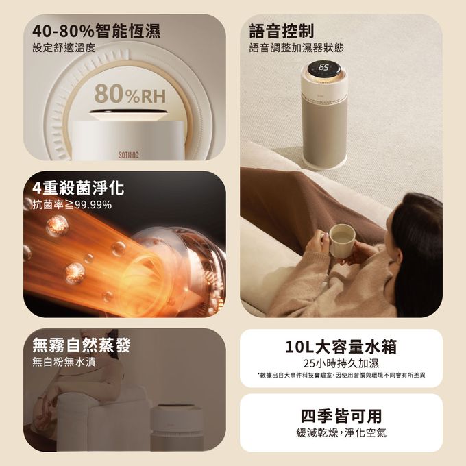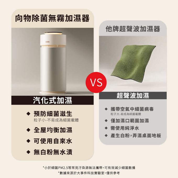 無霧加濕,自然蒸發無白粉、無水漬