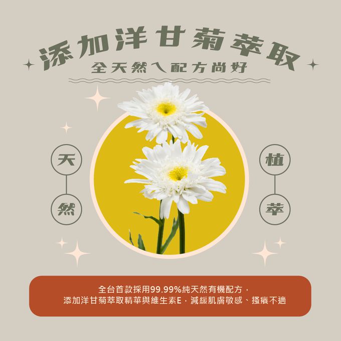 .天然有機配方|添加洋甘菊萃取精華與維生素E