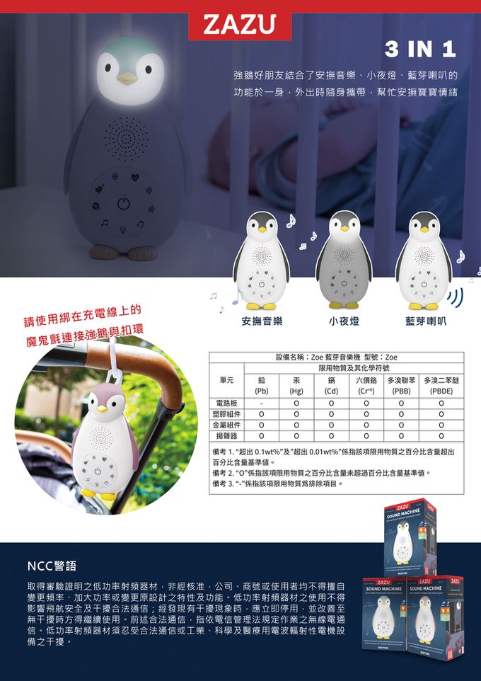 不論外出或在家都適用的【強鵝好朋友】,熟悉的心跳聲音可以幫助安撫寶寶入睡,鈴聲及夜燈將在寶寶入睡後自動關閉,感應到哭聲時又會自動開啟,切換至藍芽模式可連接手機撥放無數首音樂。