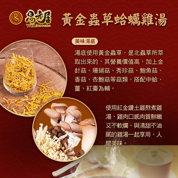 黃金蟲草加六種菇,鮮甜營養更升級。