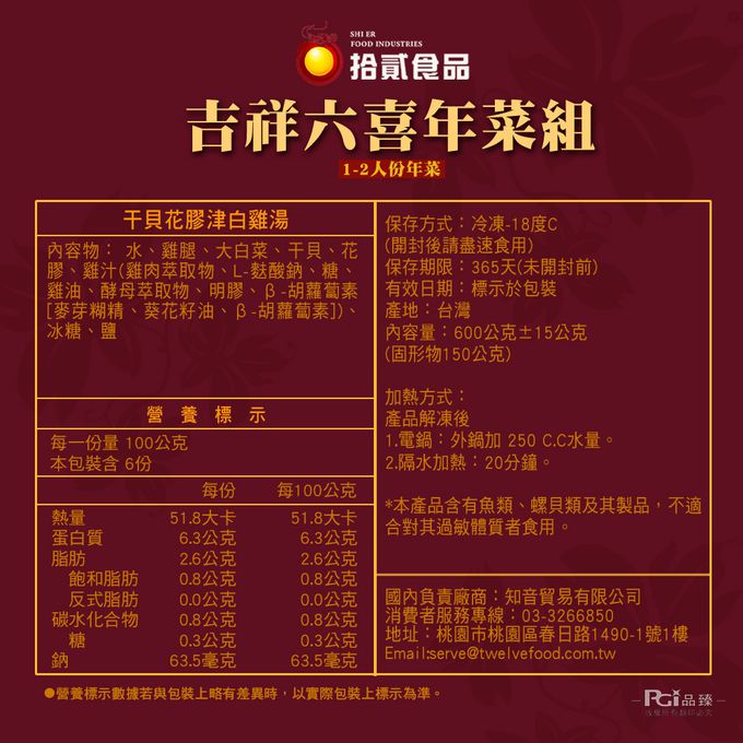品名:吉祥六喜年菜組 (6件組)-預購