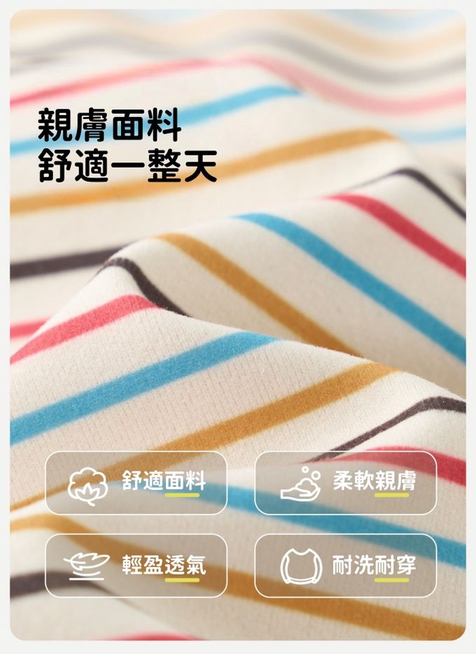 -新生兒親膚衣物(嬰幼兒包巾與背巾、包屁衣、學習褲、紗布衣等)。