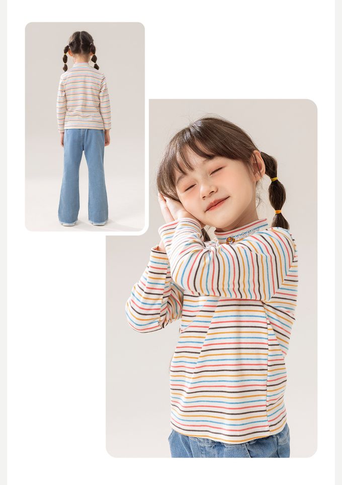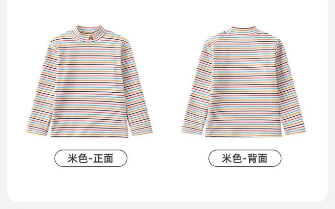 卡通汪汪隊半高領條紋長袖上衣-卡通人物天天-米色