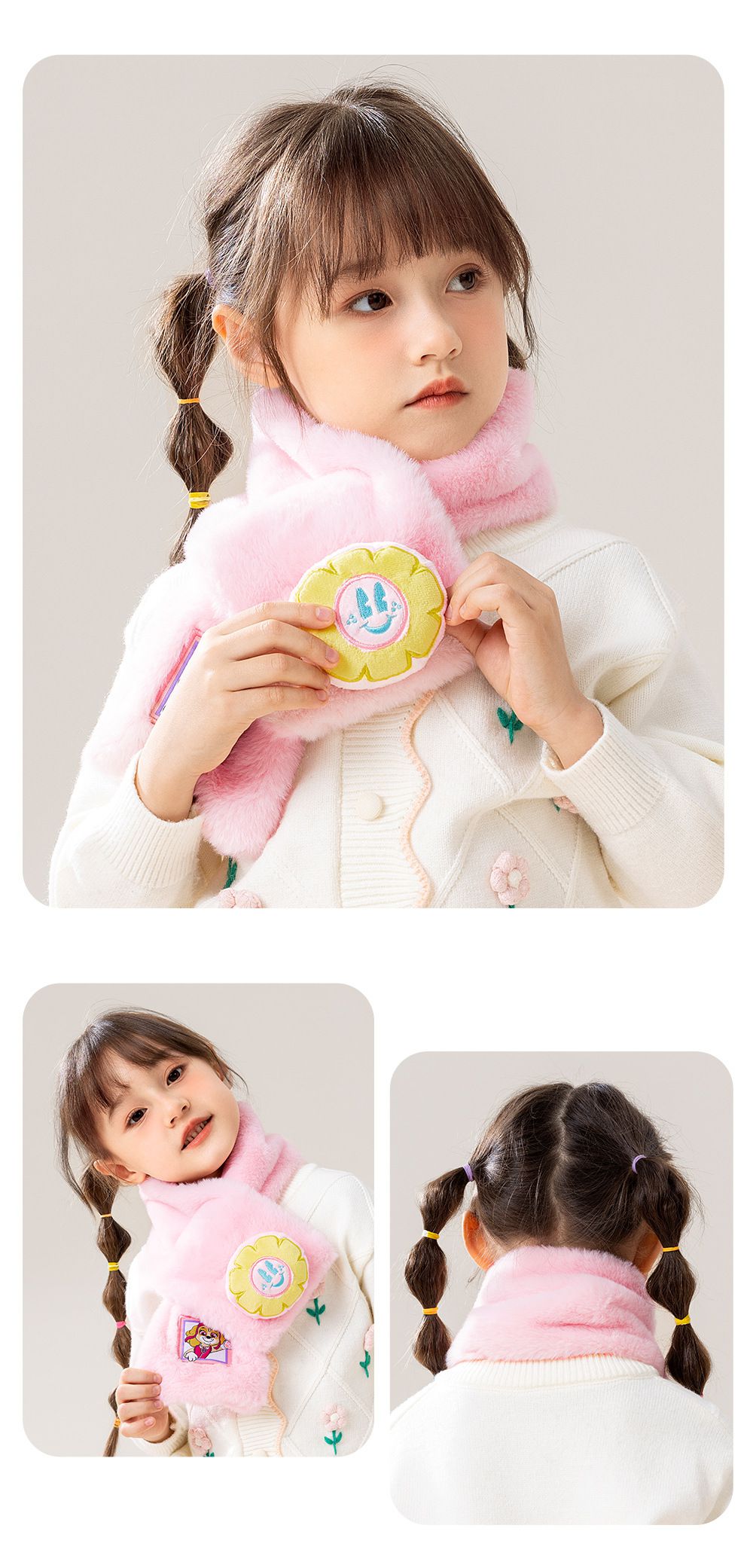 卡通汪汪隊立體花花絨毛圍巾78x12cm-卡通人物天天-粉色