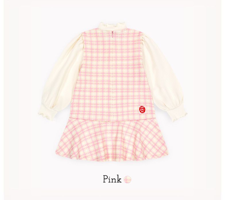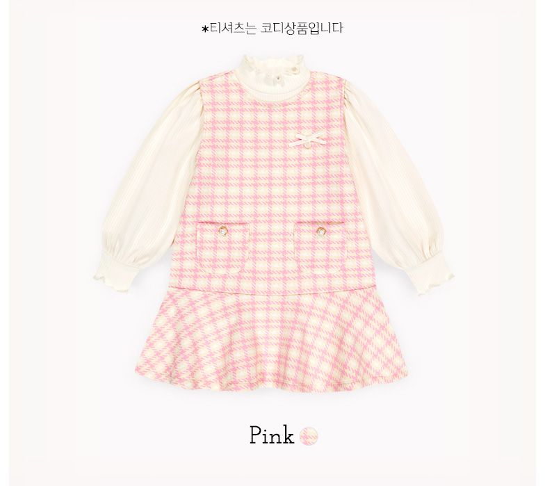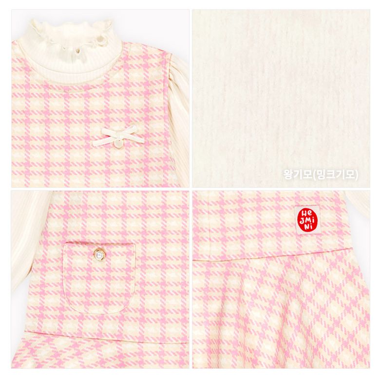 韓國 HEJMINI - (內刷毛)精品風千鳥紋背心洋裝-粉