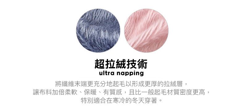 • 超拉絨技術,刷毛內裏,舒適溫暖