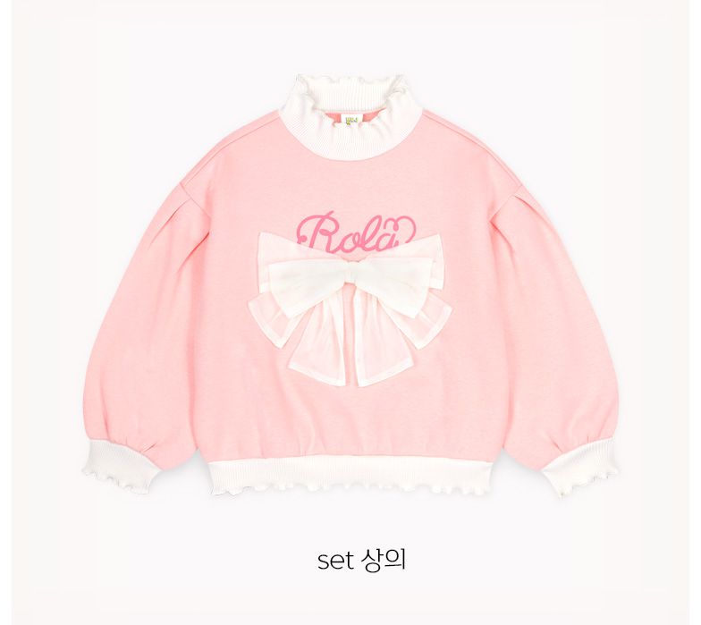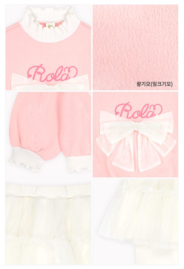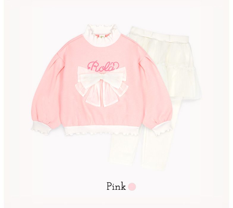 韓國 HEJMINI - (內刷毛)大蝴蝶裝飾上衣X紗裙內搭褲套裝-粉X白