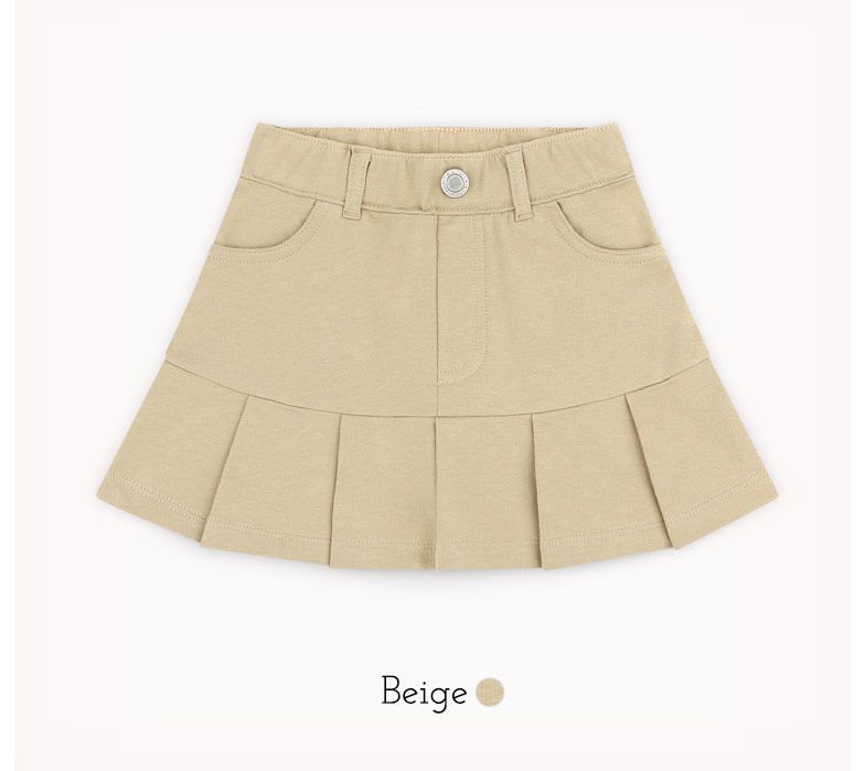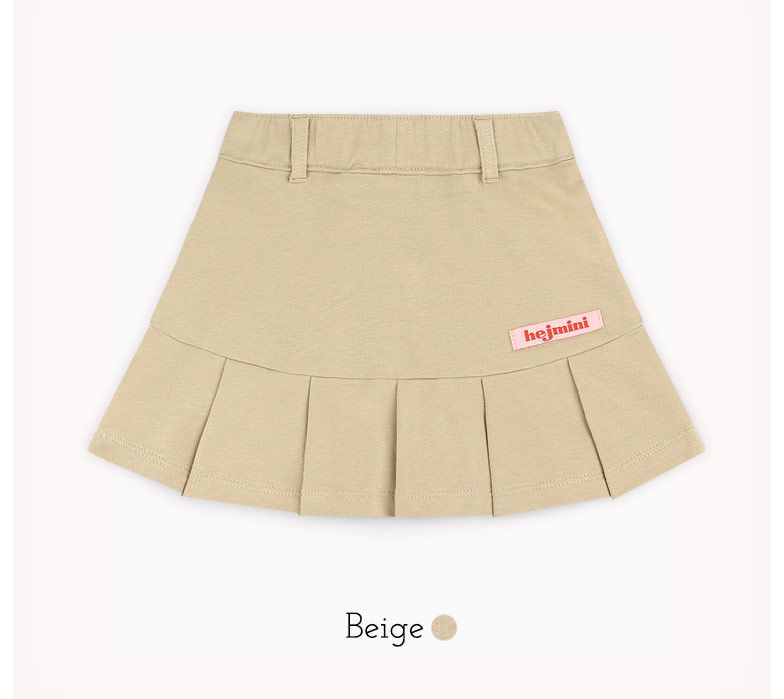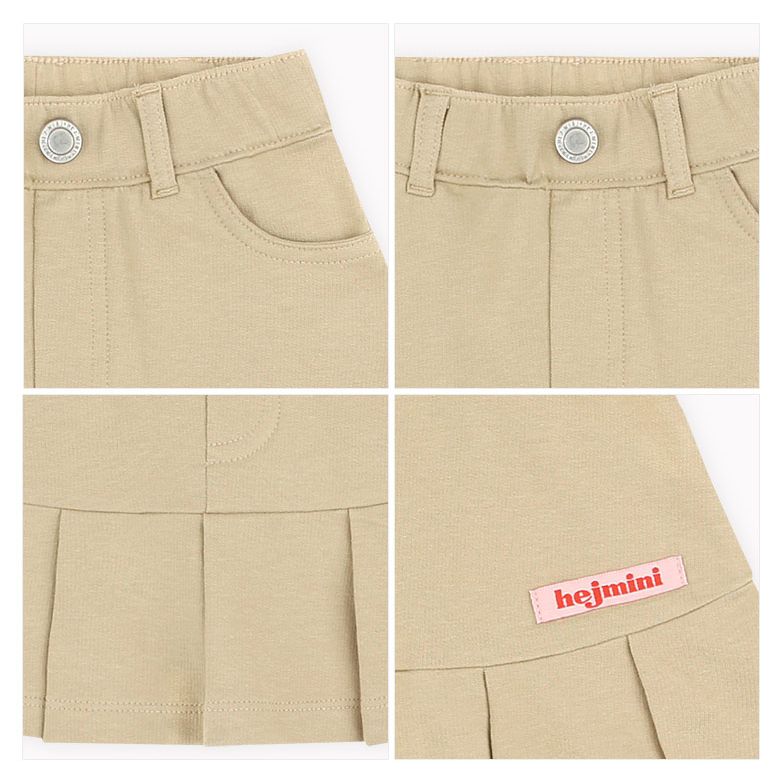 韓國 HEJMINI - 鬆緊腰好搭配打褶短裙-卡其