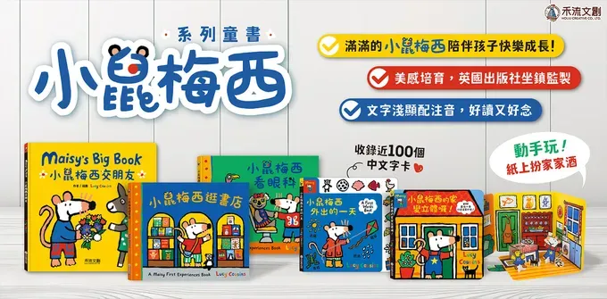 這些溫暖、友愛的故事讓我們在忙碌的生活中找到了片刻的寧靜,增進了我與孩子們之間的情感聯繫。透過書本中的互動操作,讓學齡前孩子練習手部協調,也從情境中學習到日常生活中的重要技能與適切態度,期待孩子們能跟著Maisy一起在閱讀環境中學習!