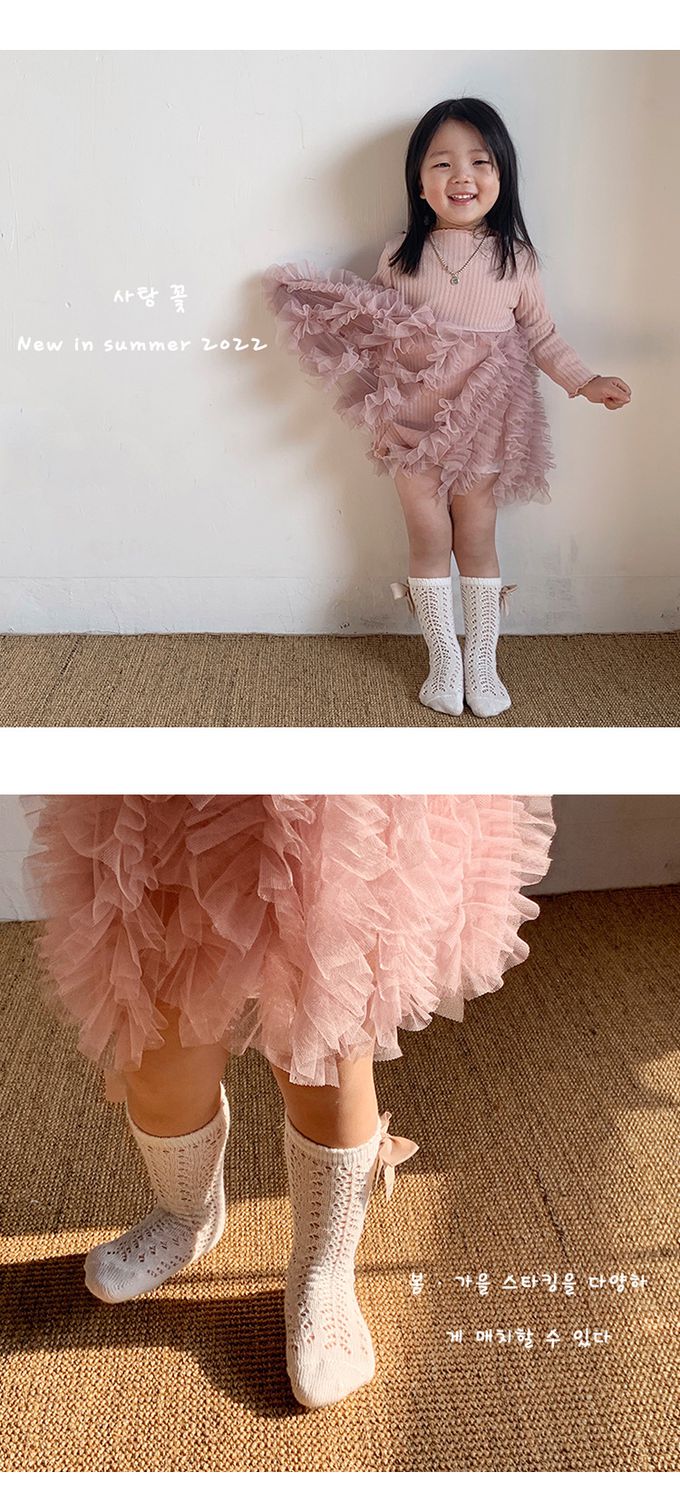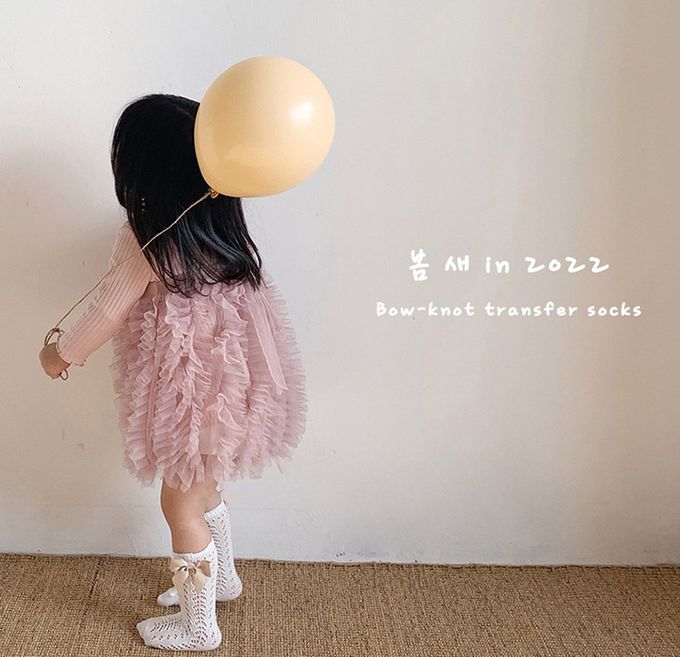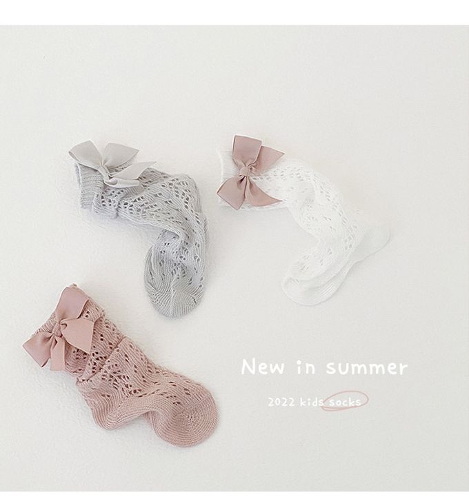 JB clothes - 三入一組-網眼中筒襪-隨機款-1102蝴蝶結 (L(建議腳長(18-20cm))