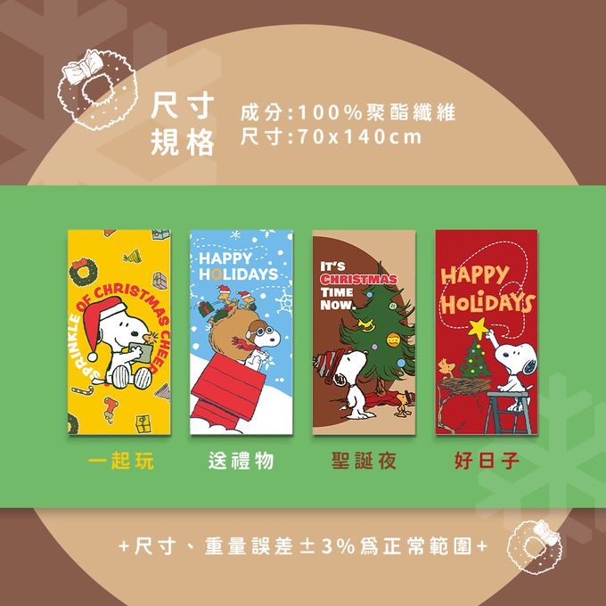 品名:Snoopy史努比聖誕節限定超細纖維浴巾-4款任選