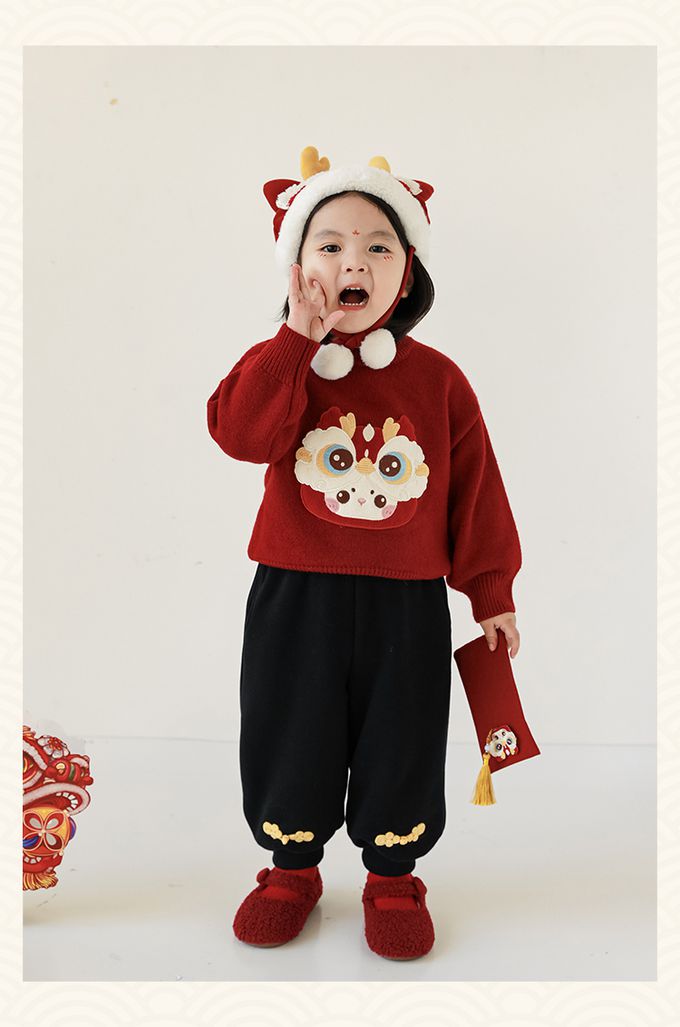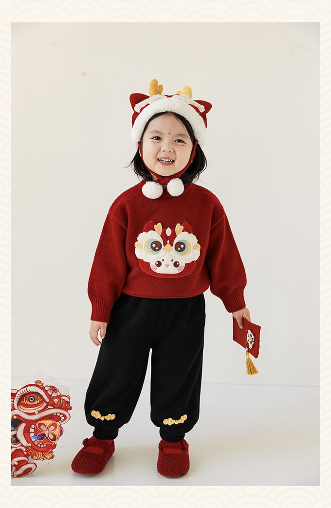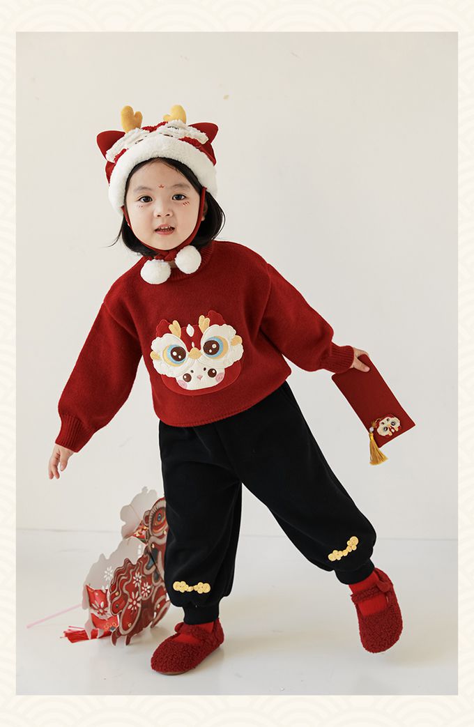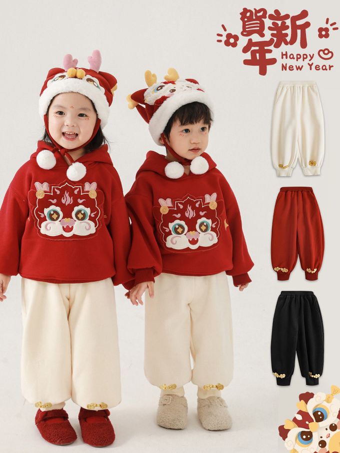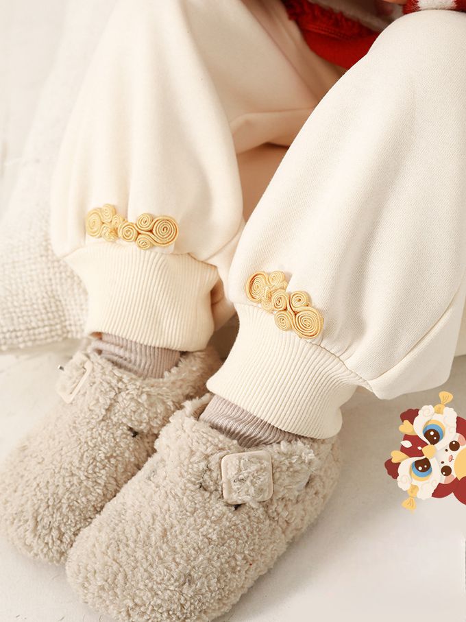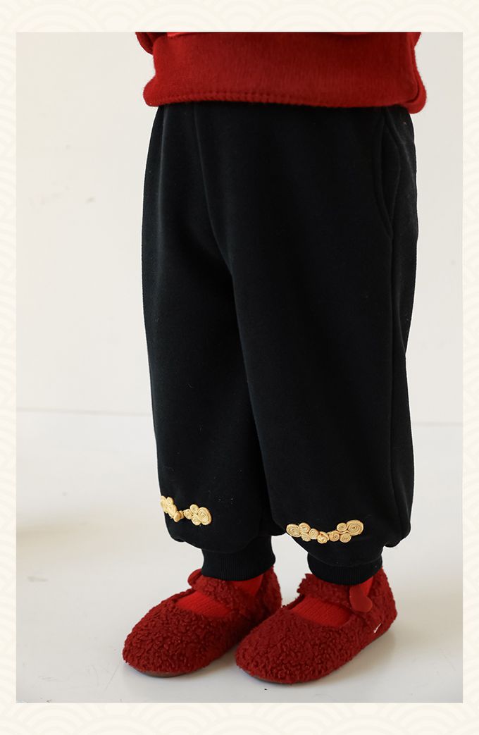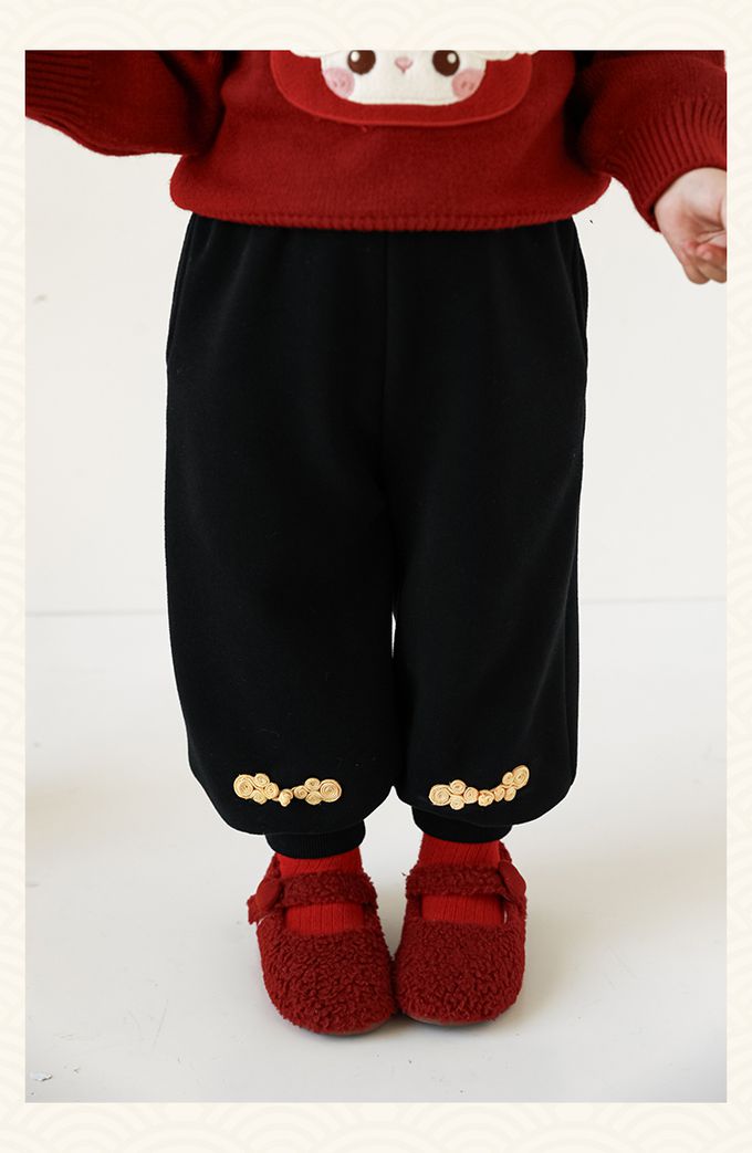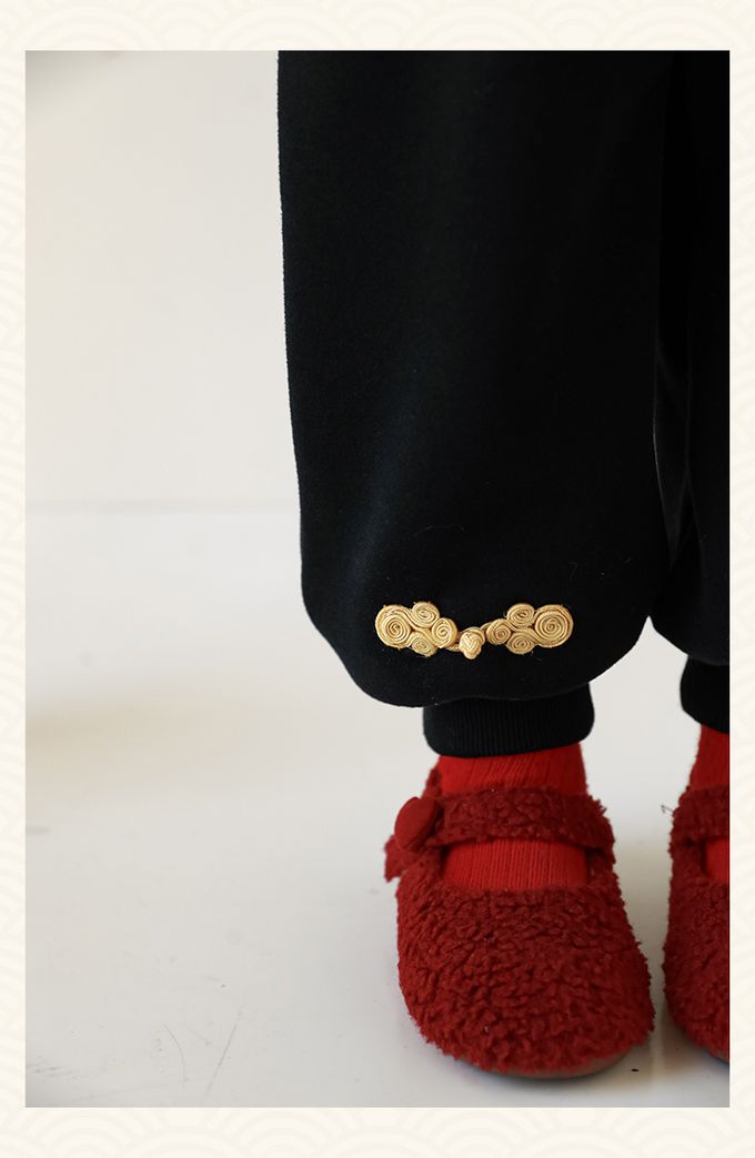 腰鬆緊休閒束口長褲(加絨)-手縫如意盤扣-黑色