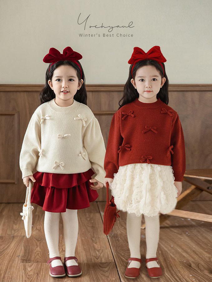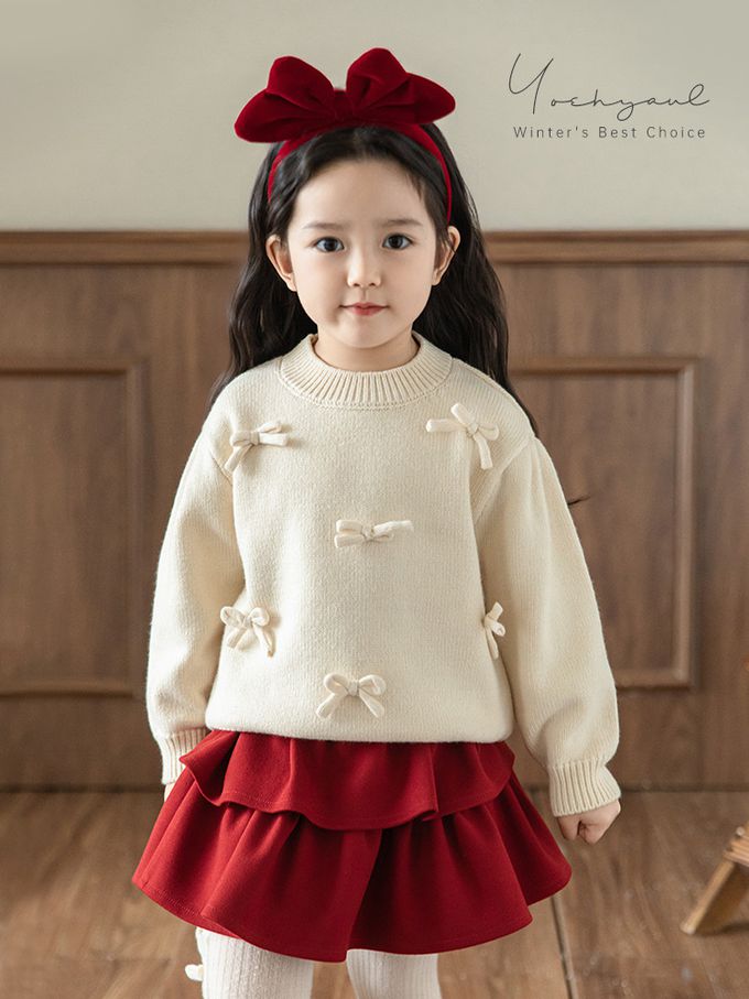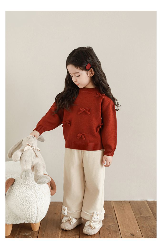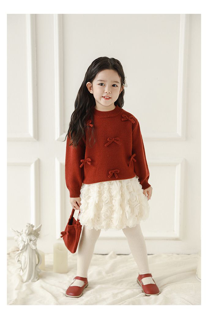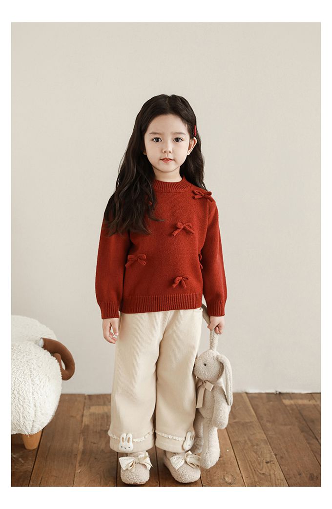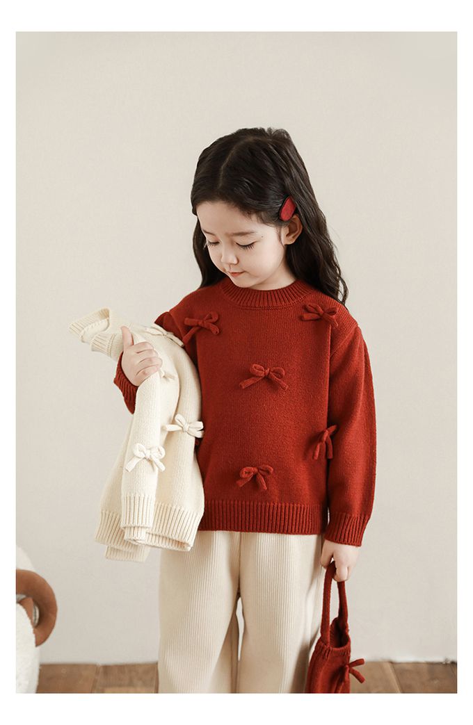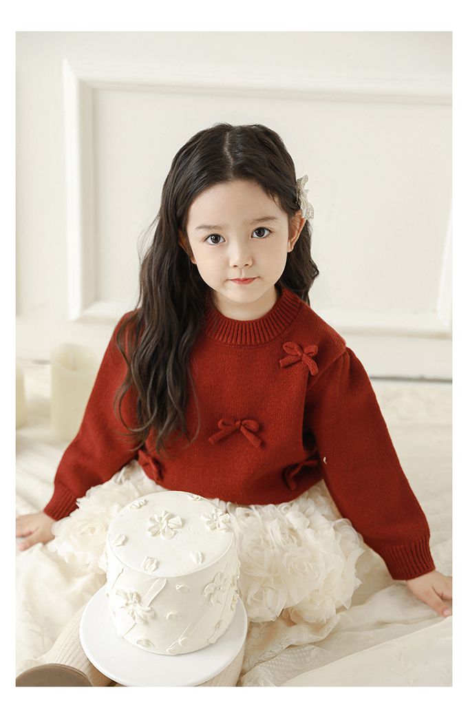 抗起球圓領針織長袖上衣(贈小包)-手縫立體蝴蝶結-紅色