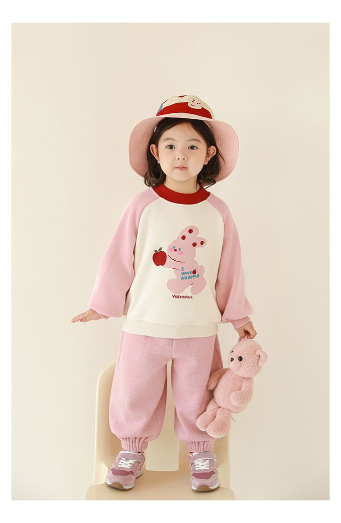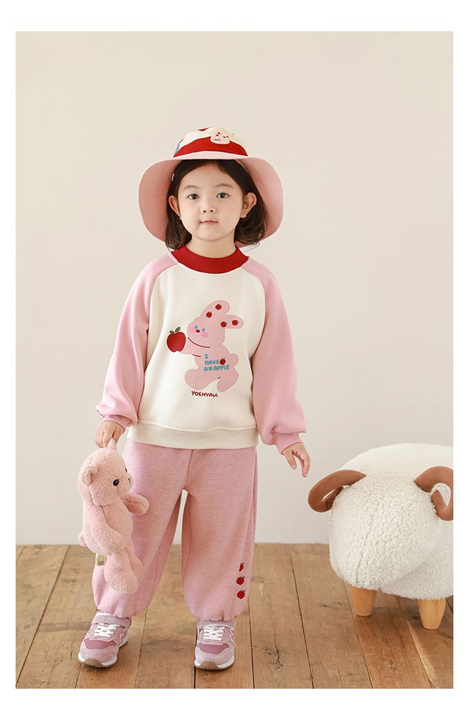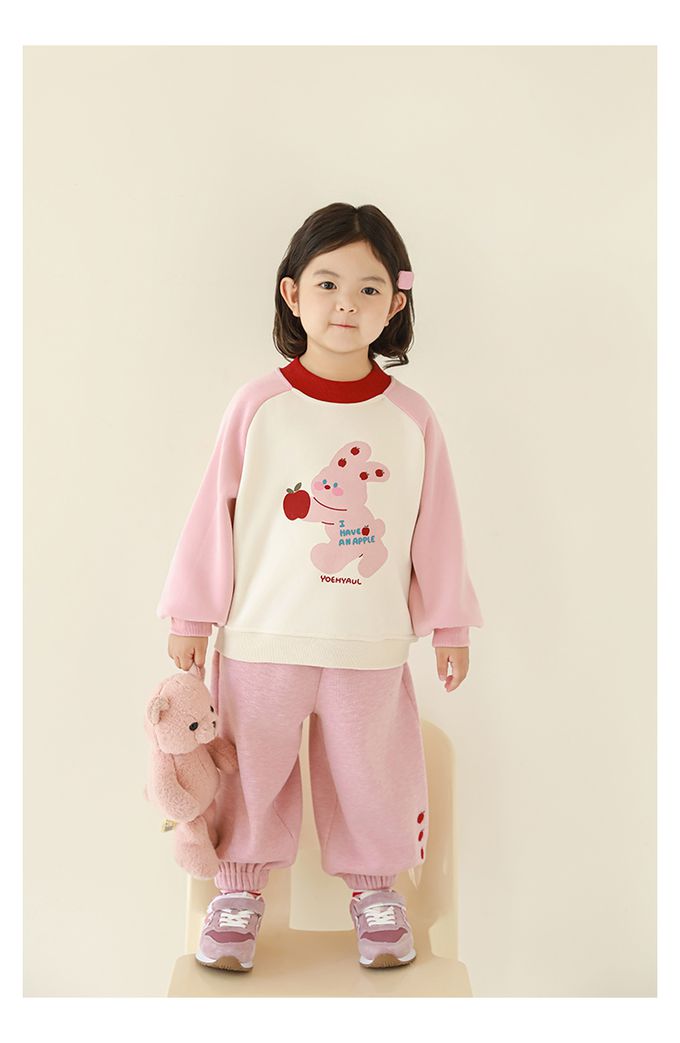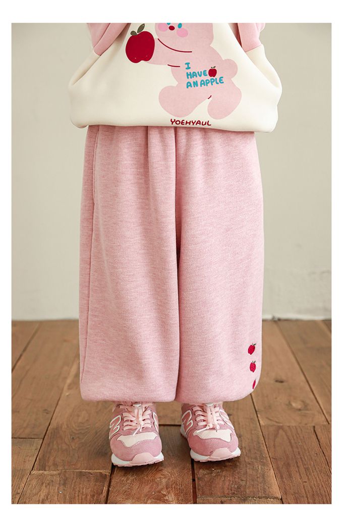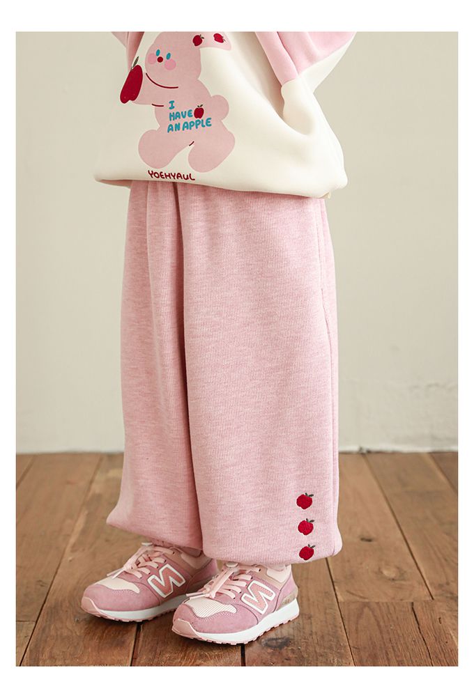 腰鬆緊休閒束口長褲(加絨)-小蘋果-粉色