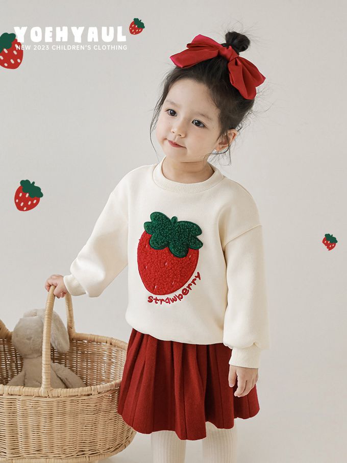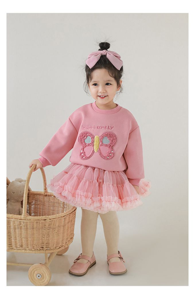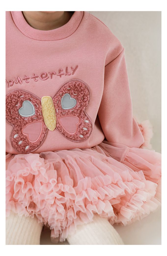 TONGMO - 圓領長袖上衣/大學T(加絨)-蝴蝶-粉色