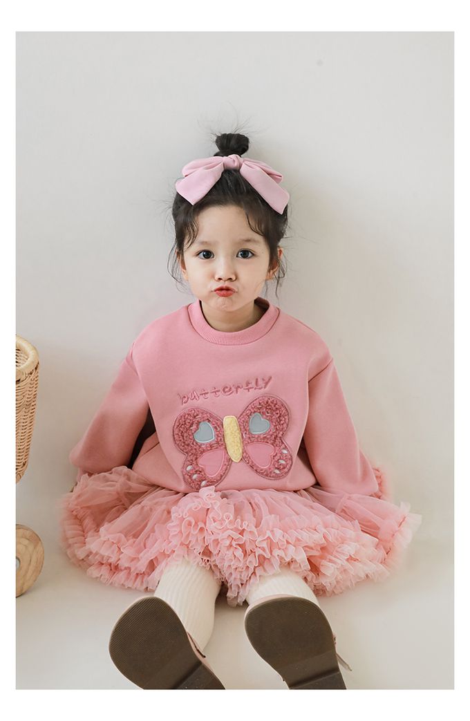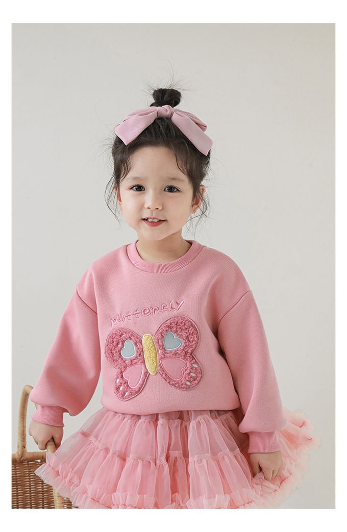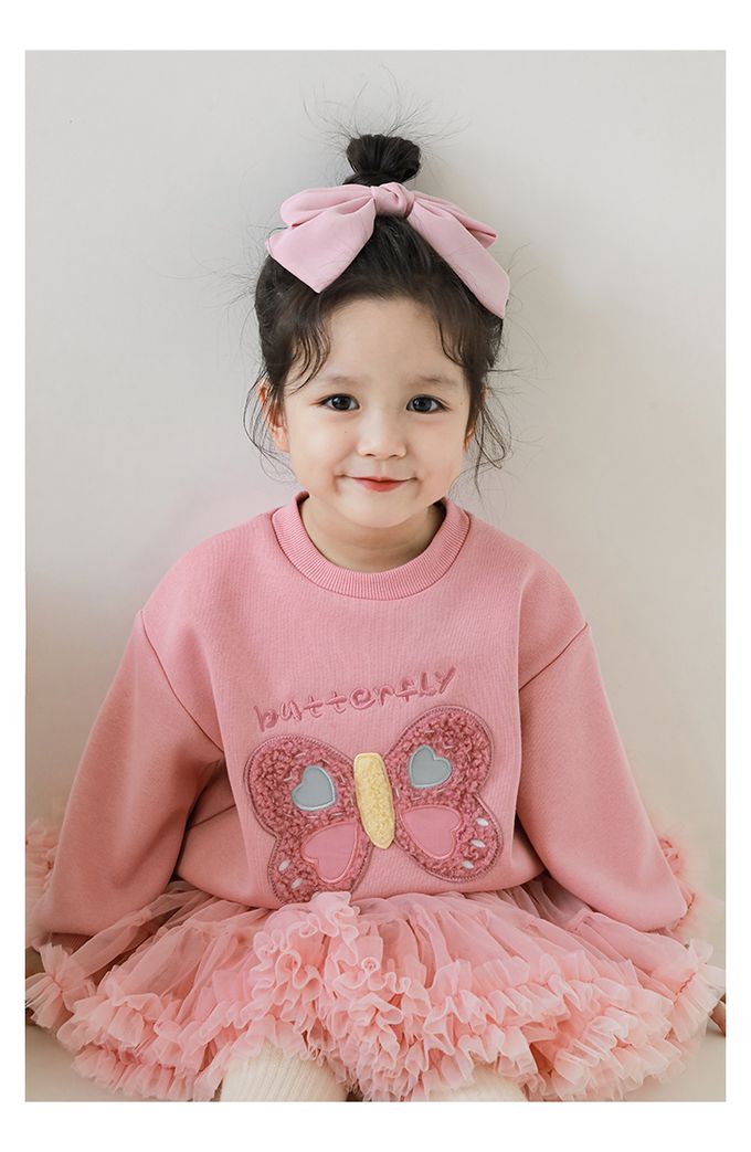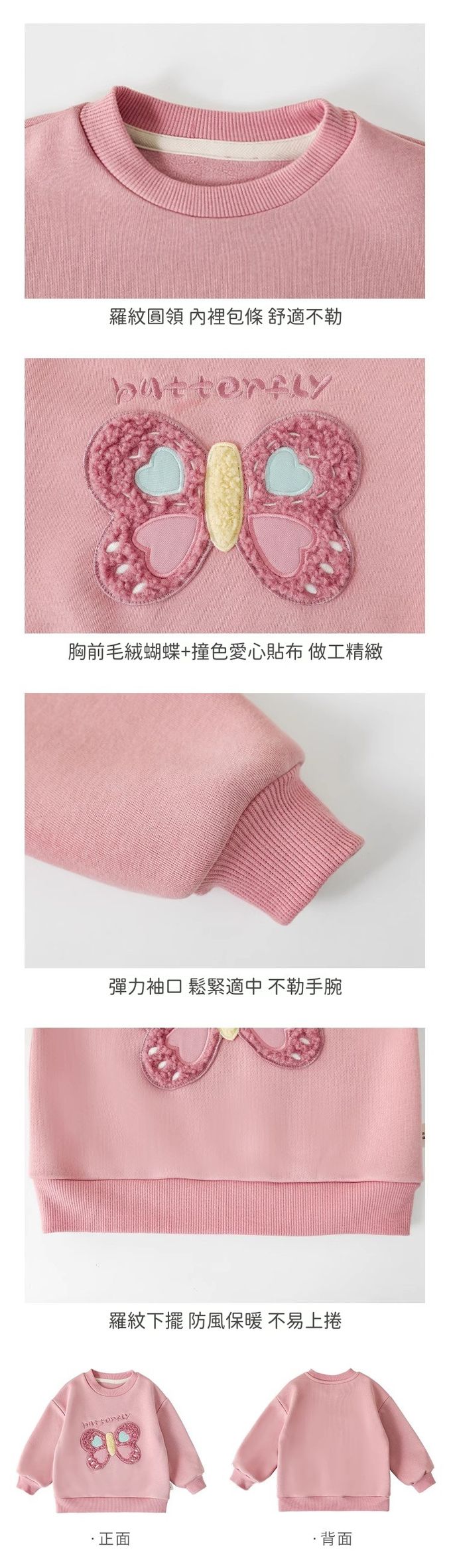 圓領長袖上衣/大學T(加絨)-蝴蝶-粉色