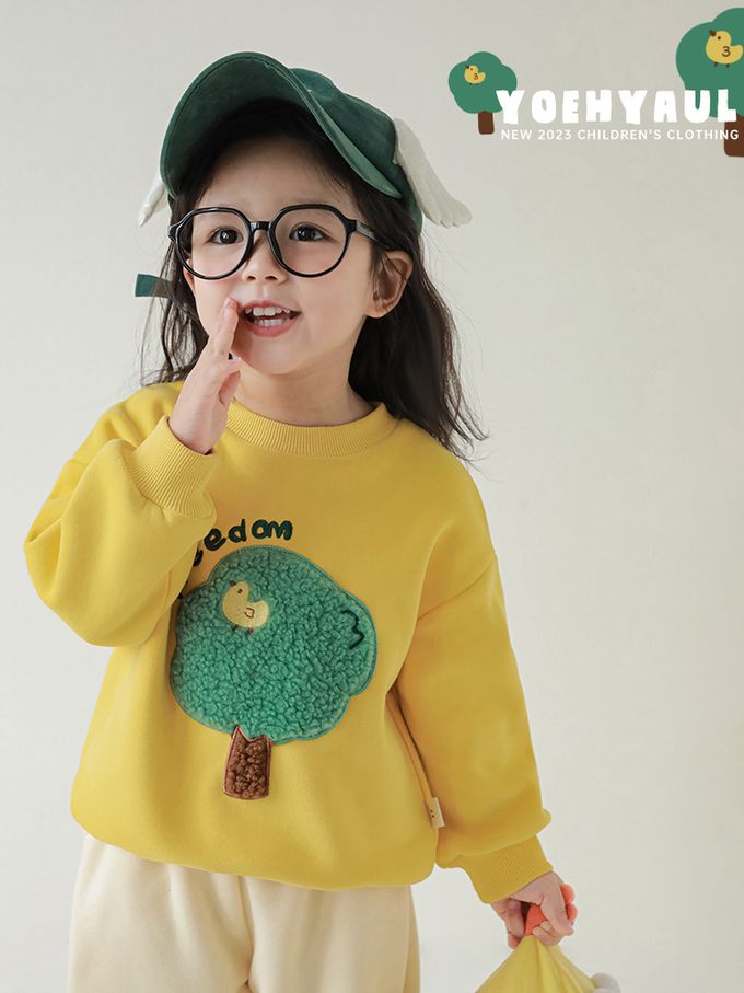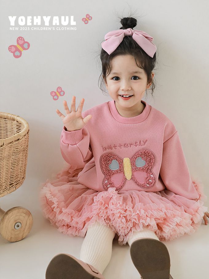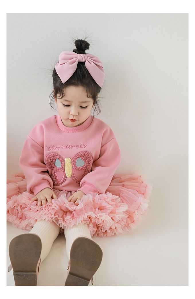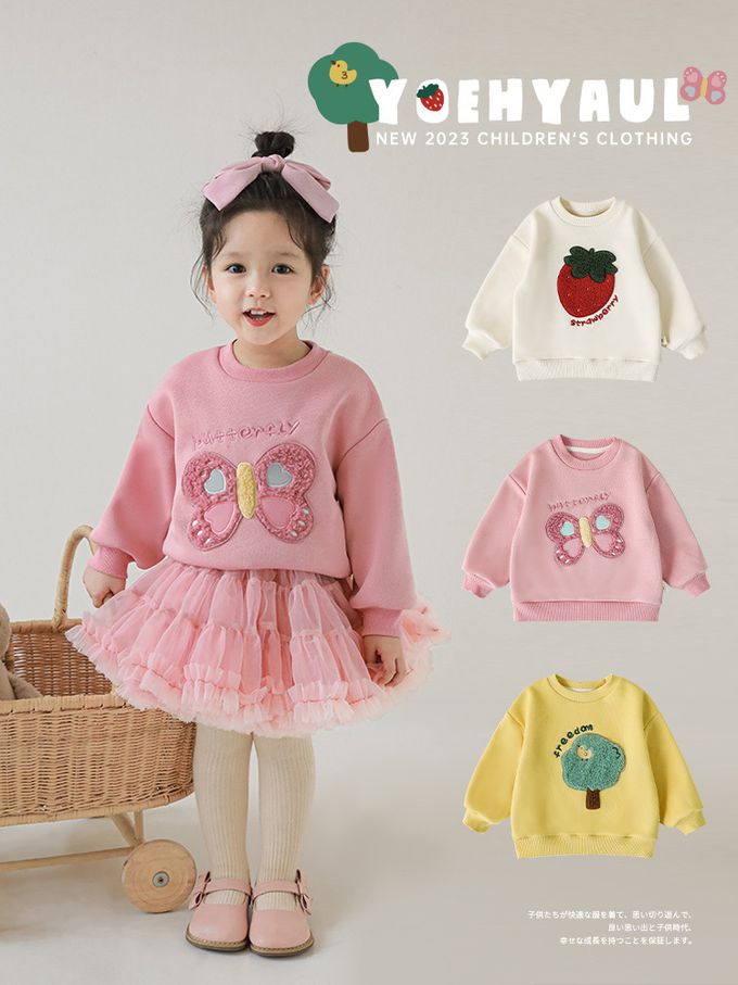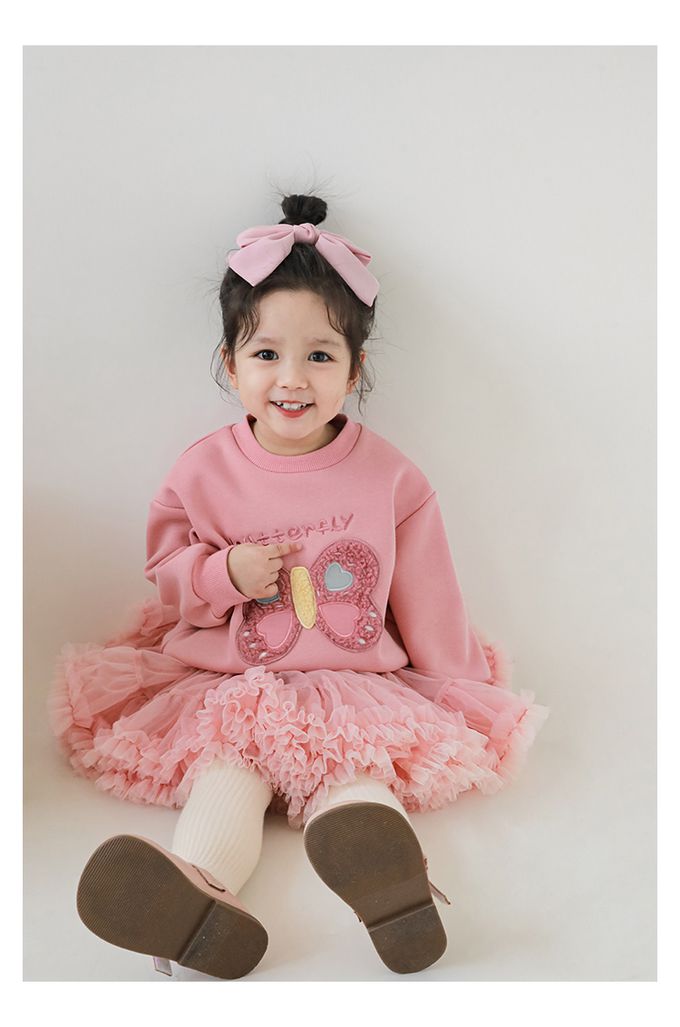圓領長袖上衣/大學T(加絨)-蝴蝶-粉色