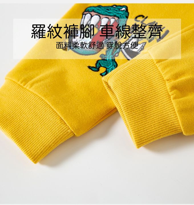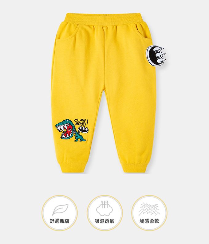 BE TOP - 純棉休閒長褲-繽紛立體恐龍-芥末綠