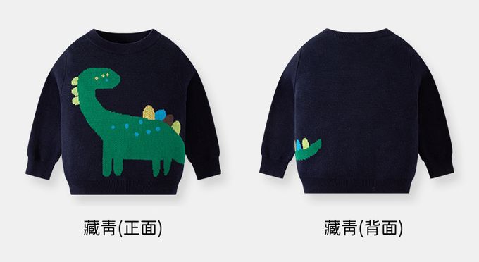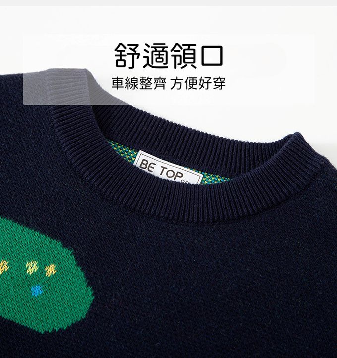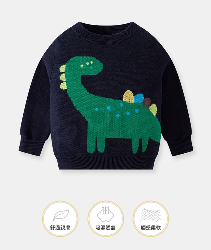 純棉圓領針織長袖上衣-綠色恐龍-藏青