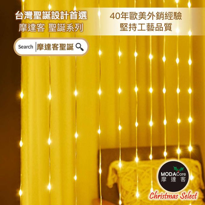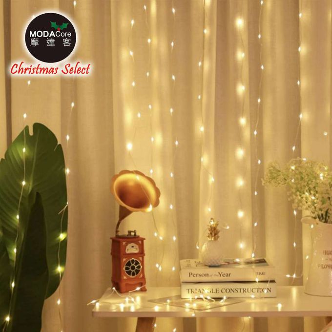 200燈LED皮線3M米燈窗簾燈串(USB充電頭/暖白光)附贈遙控器