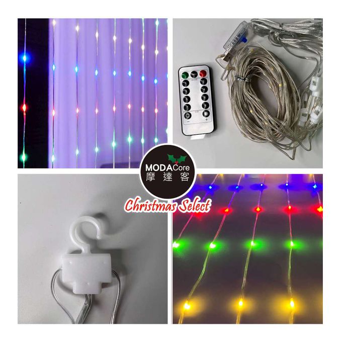 200燈LED皮線3M米燈窗簾燈串(USB充電頭/彩光)附贈遙控器