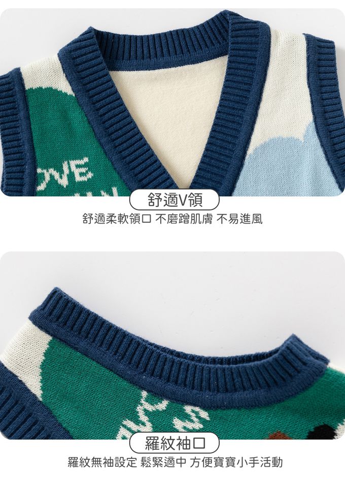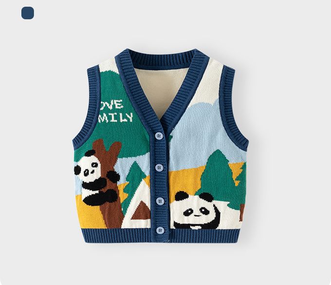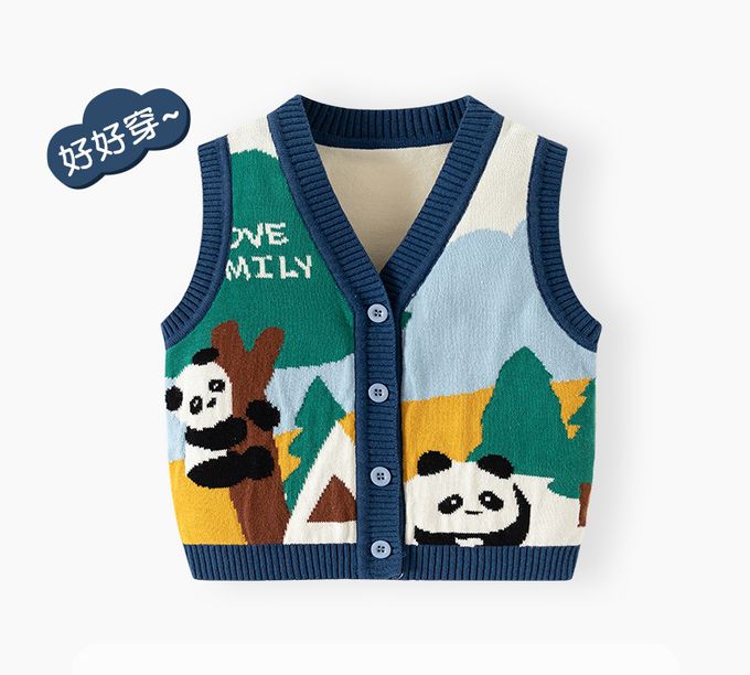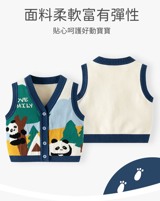 舒適V領百搭針織背心-熊貓家園-深藍色