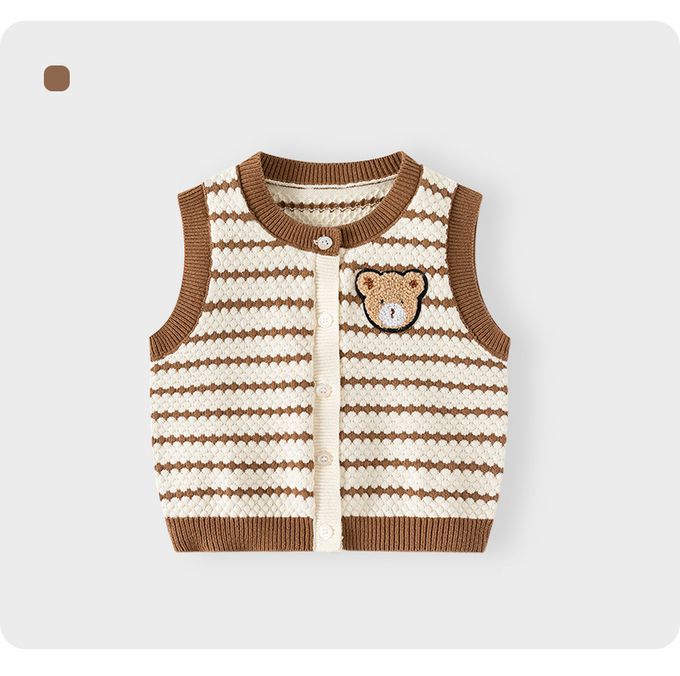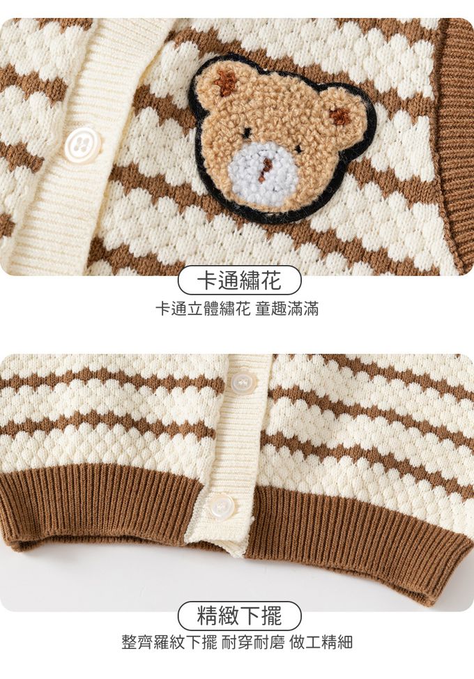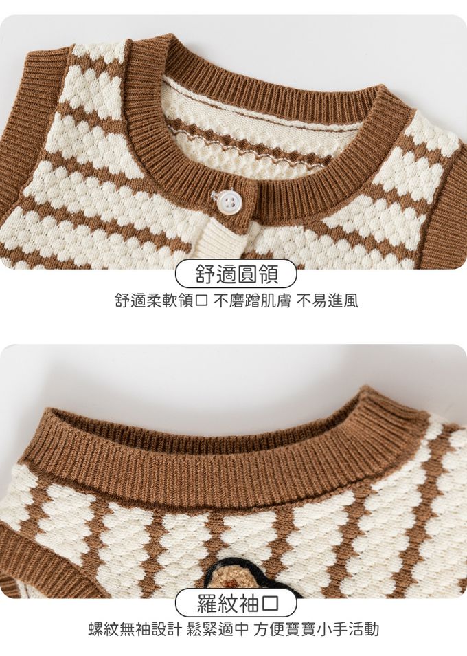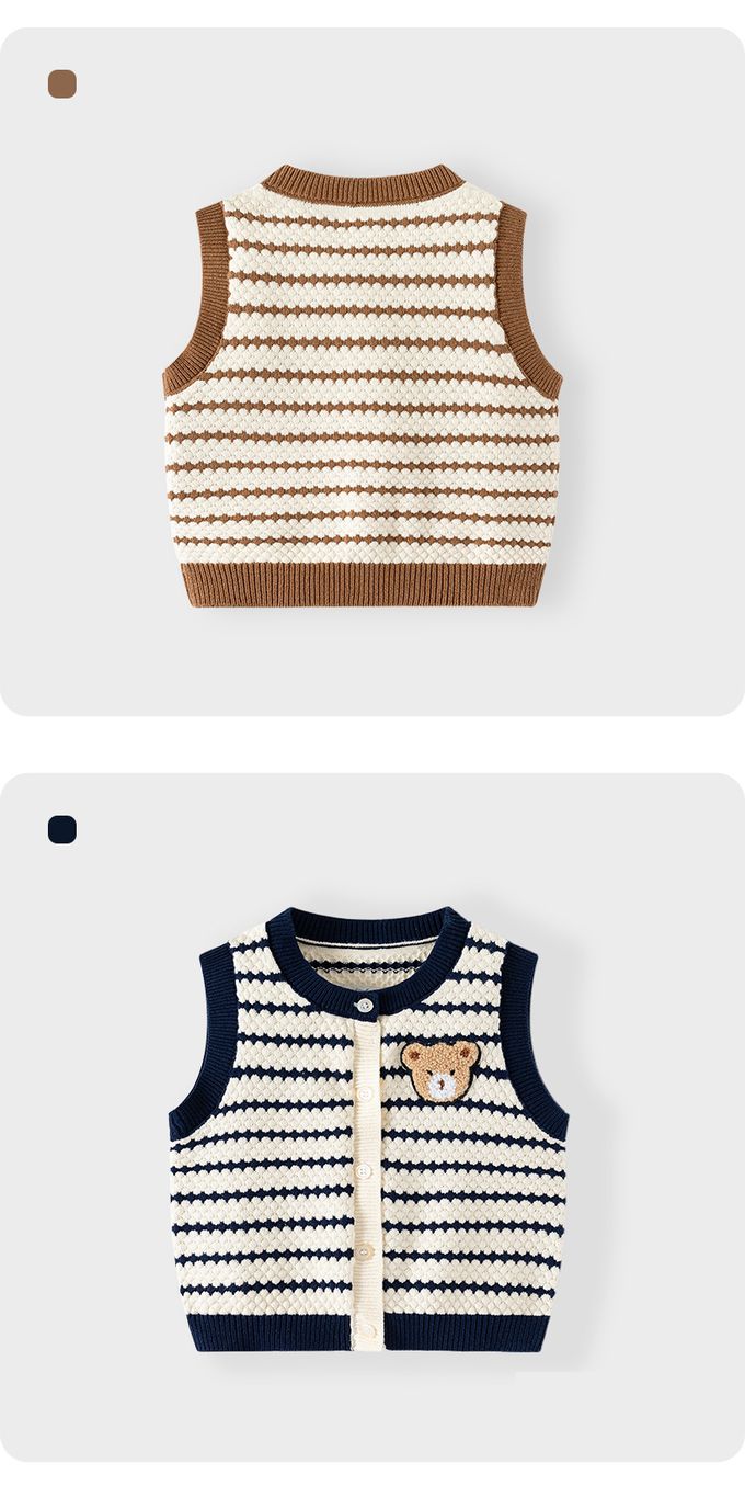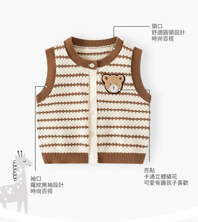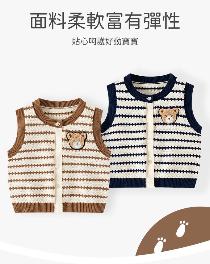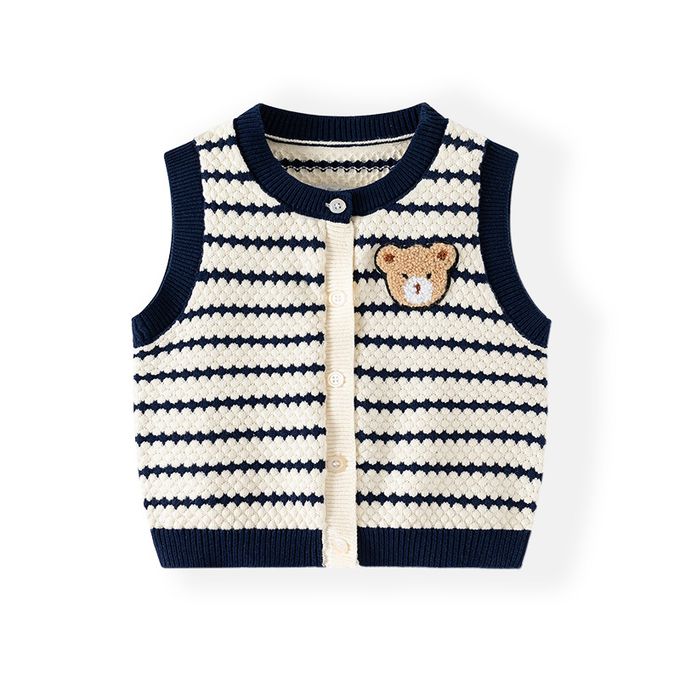 舒適圓領百搭針織背心-條紋小熊-藏青