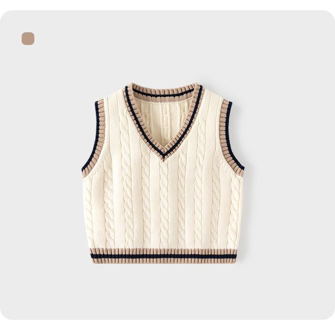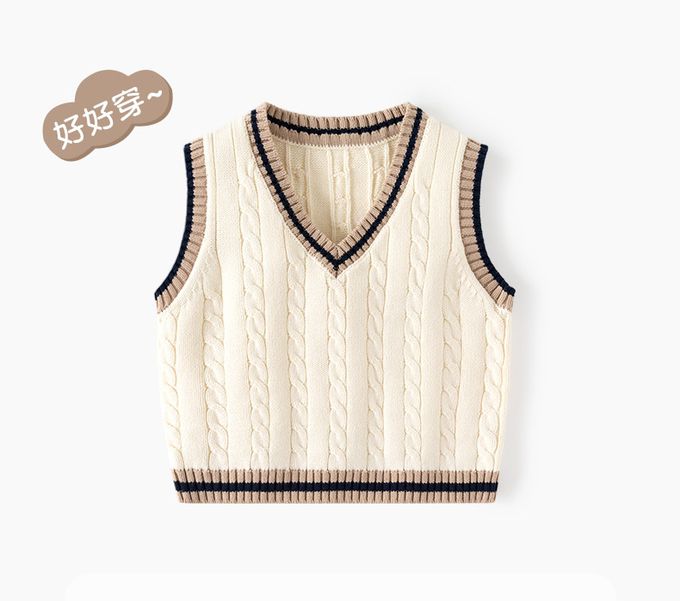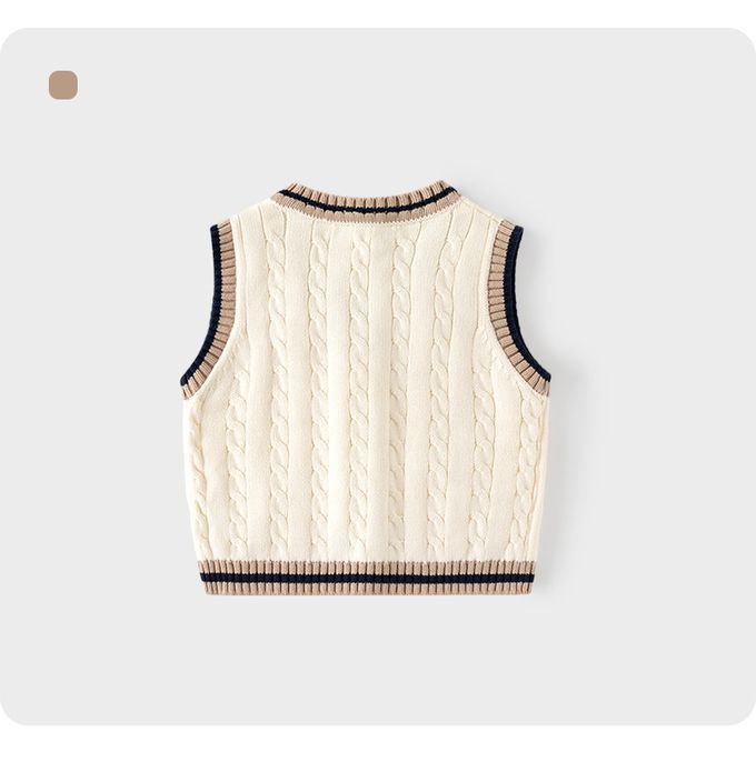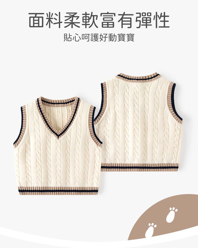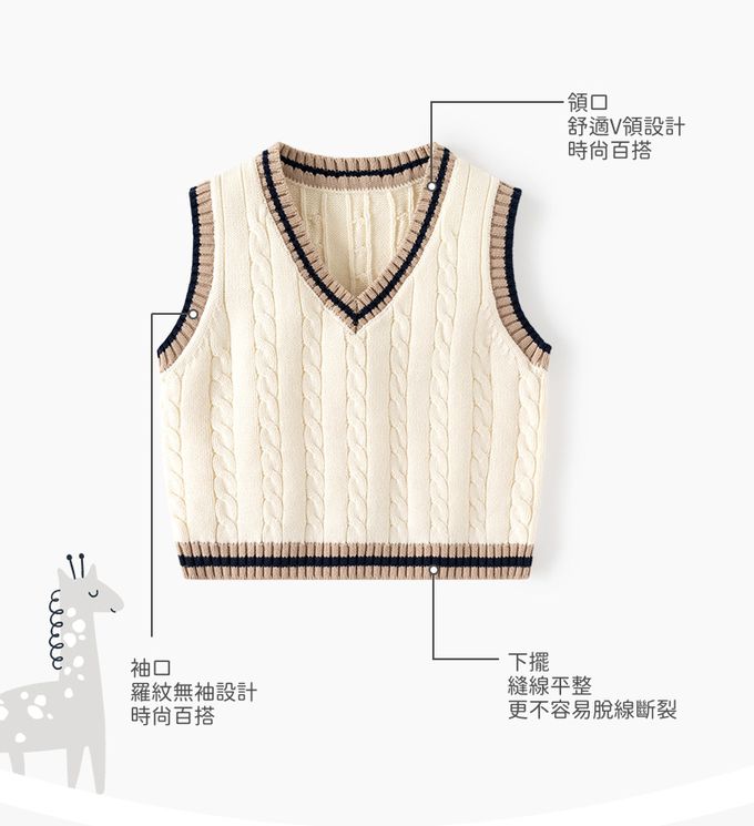 BABUYU - 純棉V領百搭針織背心-學院風麻花-米杏色